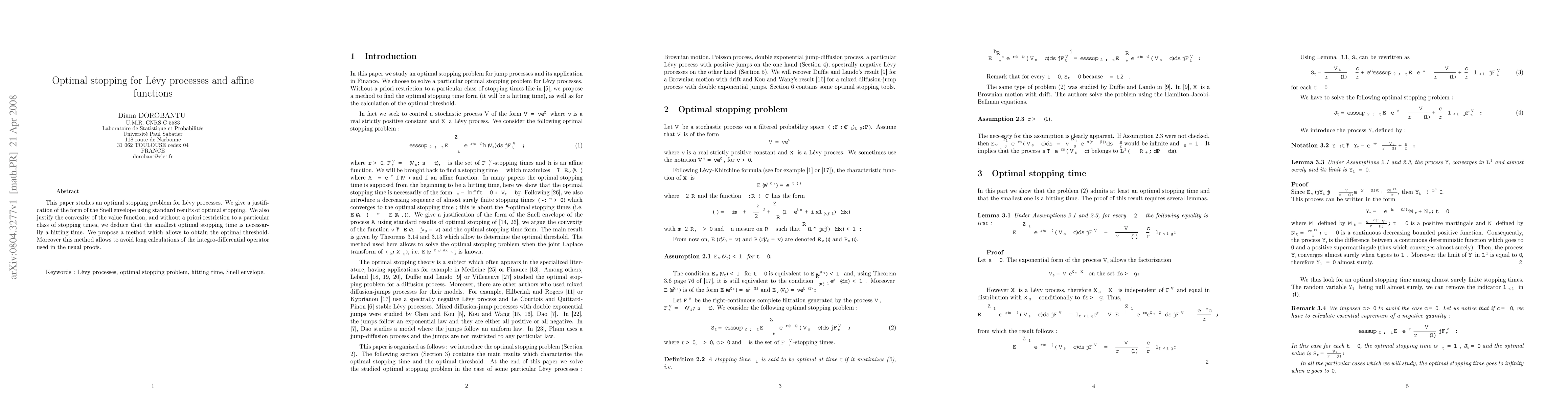 This paper addresses an optimal stopping problem for Lévy processes, proving the Snell envelope's form and the convexity of the value function. It deduces that the smallest optimal stopping time is a hitting time and proposes a method to find the optimal threshold without extensive calculations of the integro-differential operator.