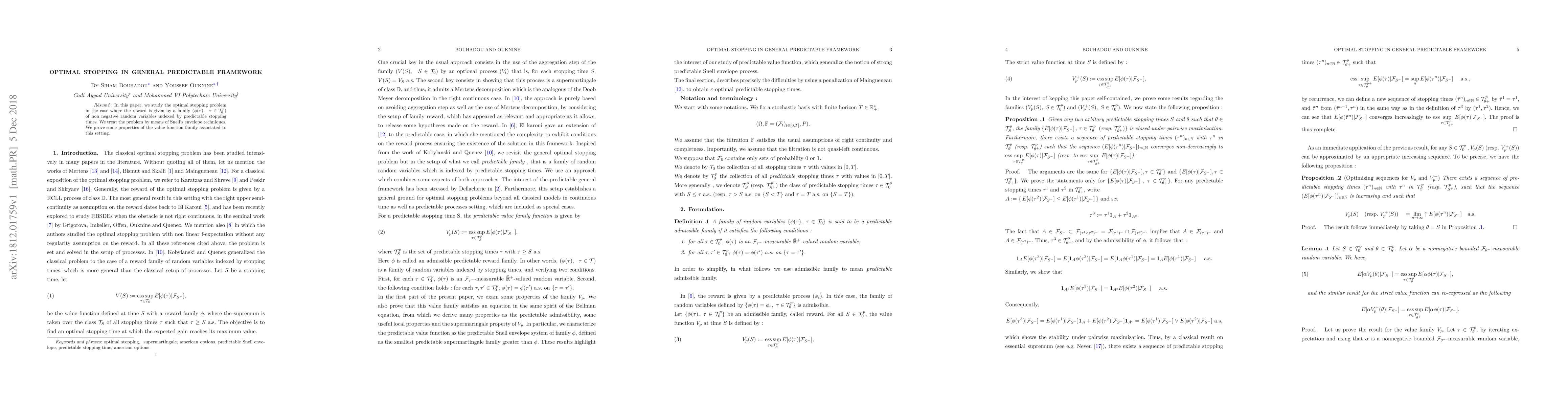 This paper studies optimal stopping in a general framework where rewards are given by families of non-negative random variables indexed by predictable stopping times. It uses Snell's envelope techniques to prove properties of the value function family associated with this setting.