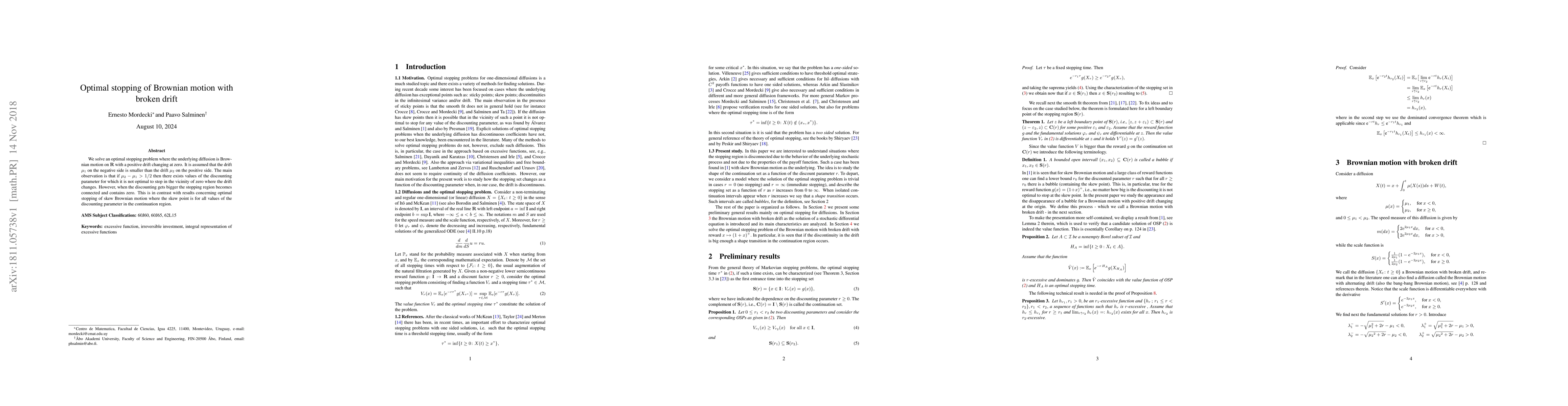 This research contributes to our understanding of optimal stopping problems in finance and control theory, with potential applications in risk management and portfolio optimization.