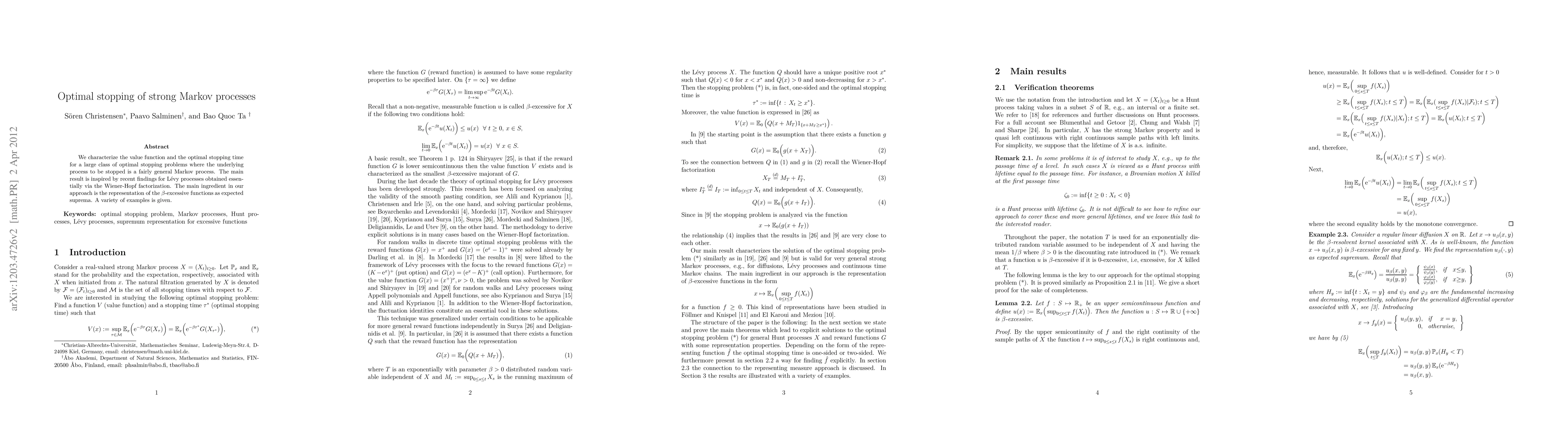 The paper introduces a novel method for characterizing the value function and optimal stopping time in optimal stopping problems, leveraging the representation of β-excessive functions as expected suprema and drawing inspiration from Wiener-Hopf factorization for Lévy processes.