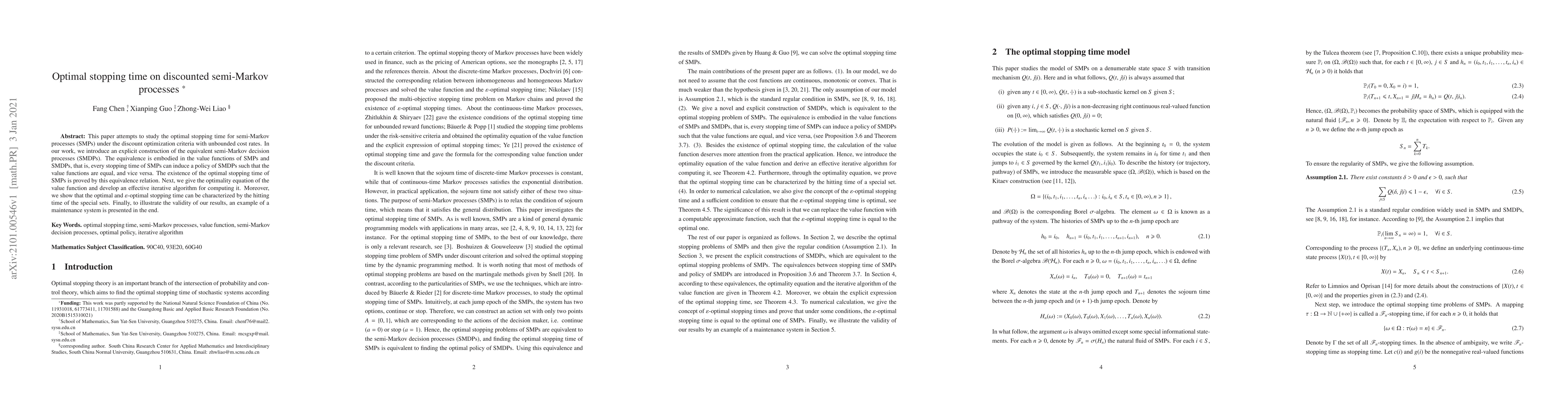 This paper explores optimal stopping times for discounted semi-Markov processes under unbounded cost rates, establishing an equivalence between semi-Markov processes and semi-Markov decision processes. The authors prove the existence of optimal stopping times and develop an iterative algorithm to compute the value function, concluding with an example from maintenance systems.