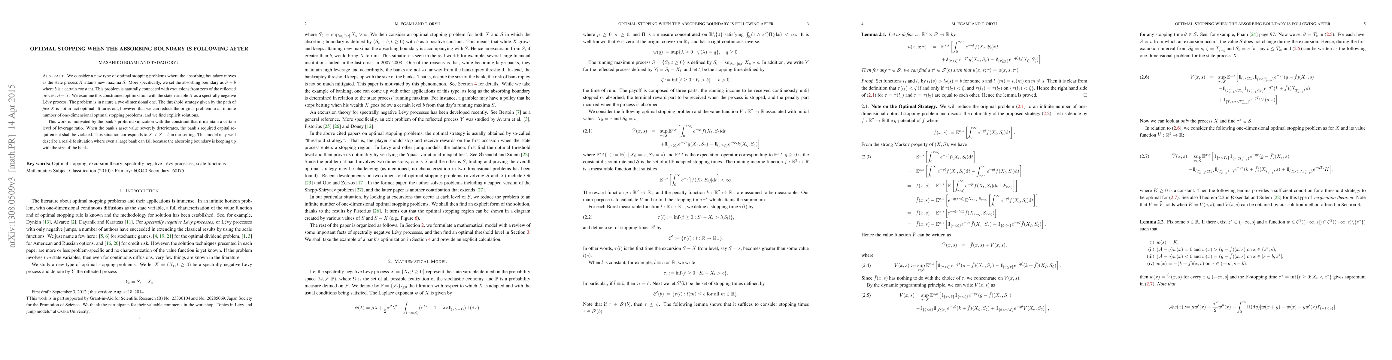 Researchers developed a new model for optimal stopping problems where an absorbing boundary moves as the state process attains new maxima, reducing it to multiple one-dimensional problems with explicit solutions. The model has implications for bank profit maximization under leverage ratio constraints.