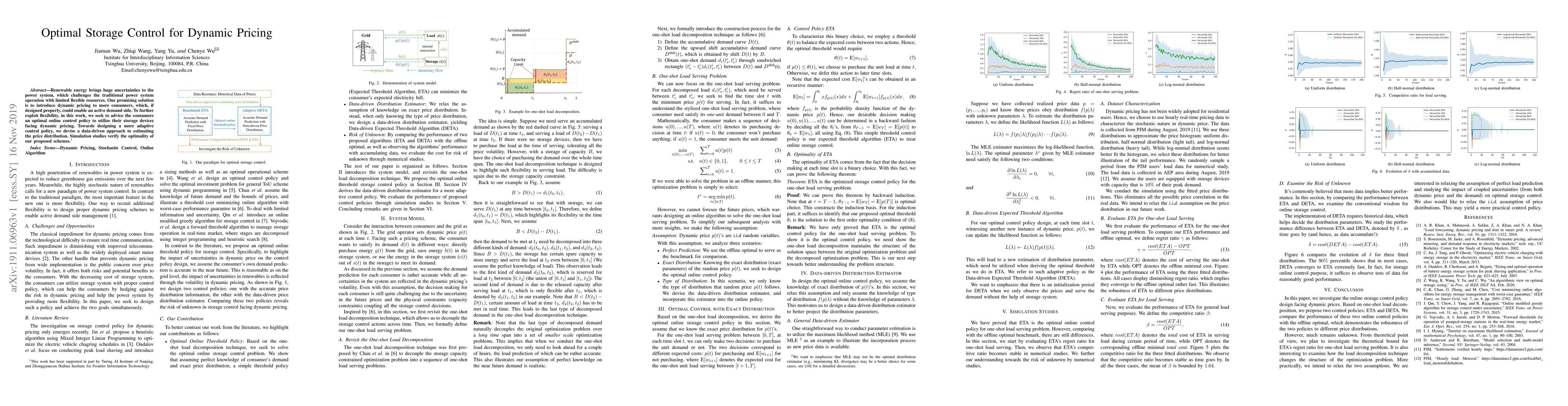 Renewable energy brings huge uncertainties to the power system, which challenges the traditional power system operation with limited flexible resources. One promising solution is to introduce dynamic pricing to more consumers, which, if designed properly, could enable an active demand side. To further exploit flexibility, in this work, we seek to advice the consumers an optimal online control policy to utilize their storage devices facing dynamic pricing. Towards designing a more adaptive control policy, we devise a data-driven approach to estimating the price distribution. Simulation studies verify the optimality of our proposed schemes.