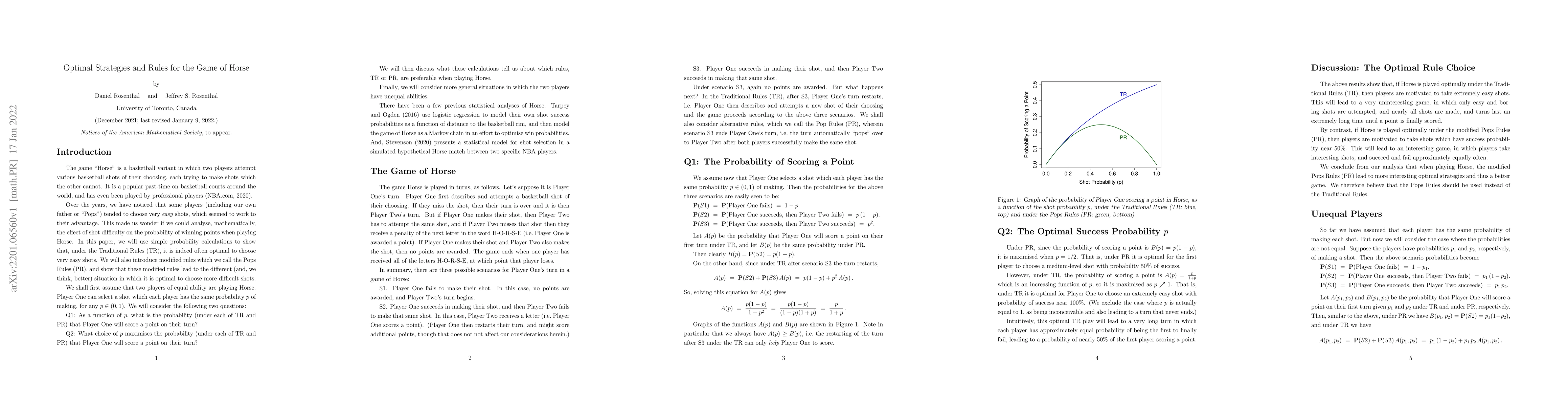 We investigate the probability of scoring a point when playing the basketball shooting game called "Horse". We show that under the Traditional Rules, it is optimal to choose very easy shots. We propose alternative rules called Pops Rules, and show that they lead to more difficult optimal shots, and thus to a more interesting game.