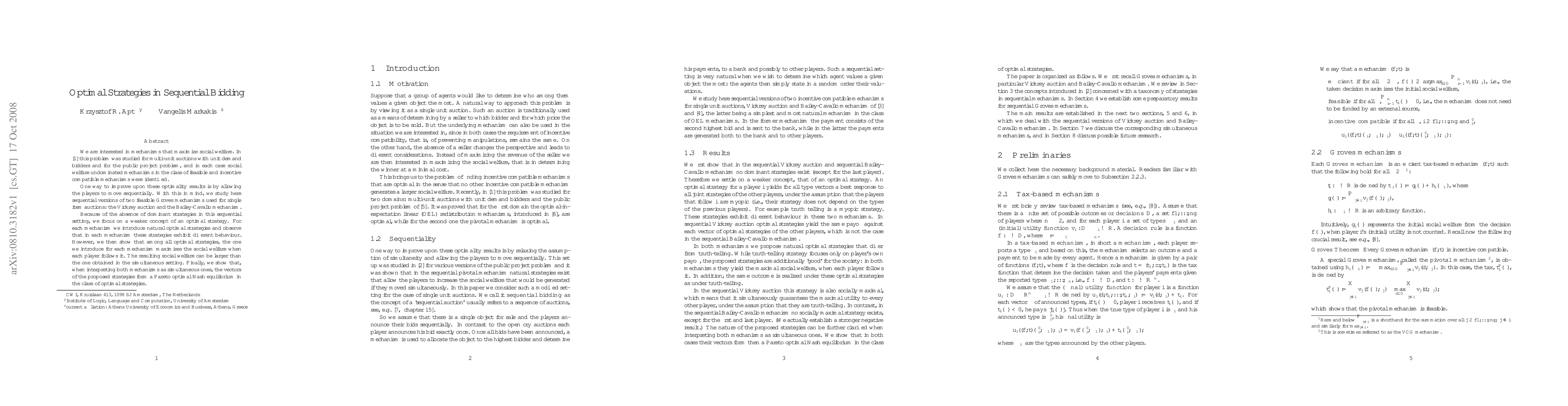 This paper investigates sequential versions of the Vickrey auction and the Bailey-Cavallo mechanism to maximize social welfare, introducing optimal strategies that outperform simultaneous settings. It demonstrates that these strategies achieve higher social welfare and form a Pareto optimal Nash equilibrium when viewed as simultaneous mechanisms.