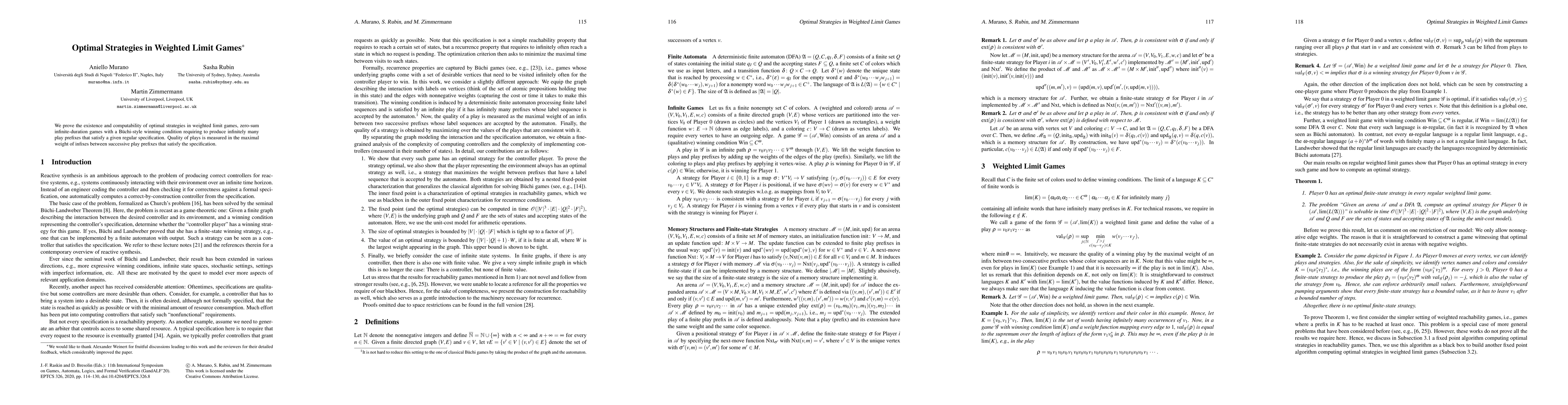 Summary: This paper establishes the existence and computability of optimal strategies in weighted limit games, which are zero-sum infinite-duration games with a B\"uchi-style winning condition based on satisfying a regular specification. The quality is determined by the maximal weight of infixes between play prefixes that meet the specification.