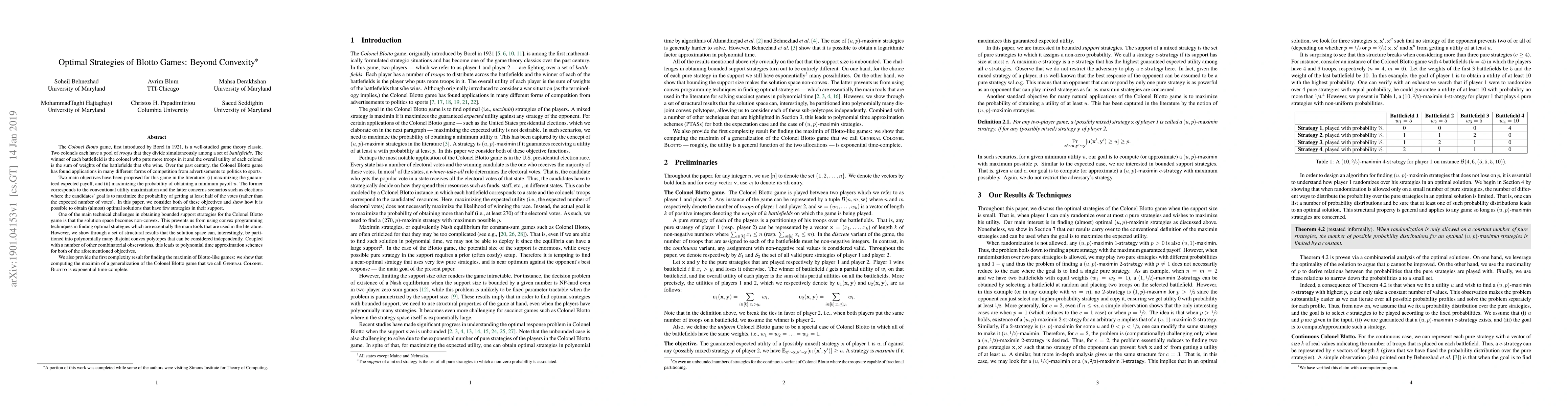 This paper presents optimal strategies for the Colonel Blotto game, addressing two main objectives: maximizing guaranteed expected payoff and maximizing the probability of achieving a minimum payoff. Despite the non-convexity of the solution space, the authors partition it into polynomially many convex polytopes, enabling polynomial time approximation schemes for both objectives.