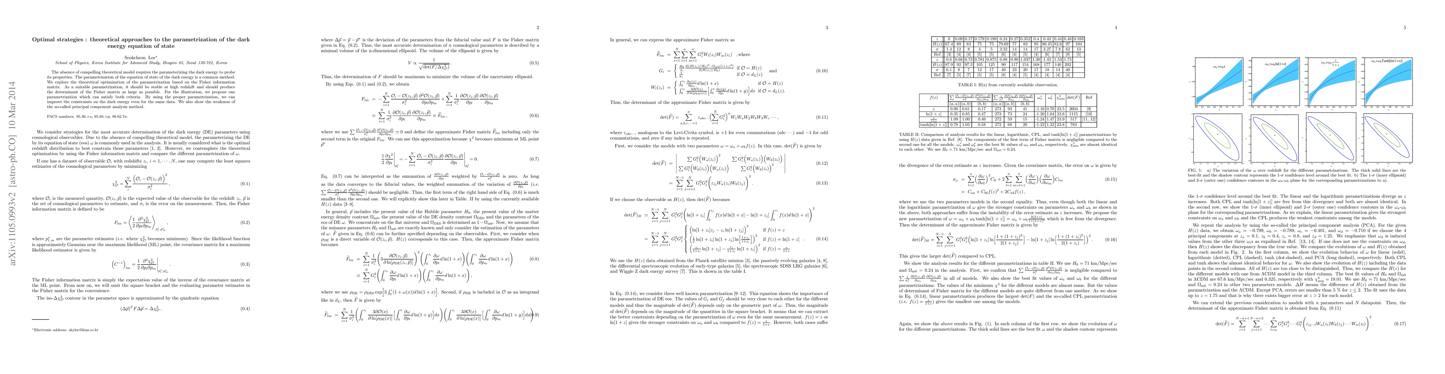 This paper investigates optimal theoretical strategies for parametrizing the dark energy equation of state using Fisher information matrix optimization. It proposes a new parametrization that is stable at high redshifts and maximizes the Fisher matrix determinant, thereby improving dark energy constraints.