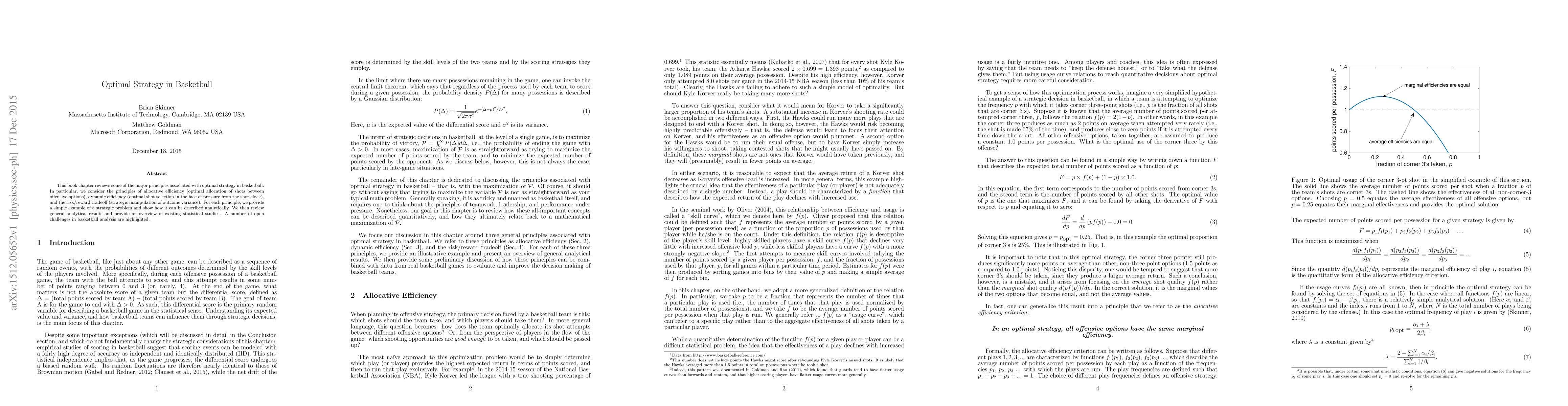 This paper reviews key principles of optimal strategy in basketball, including allocative efficiency, dynamic efficiency, and the risk/reward tradeoff, using analytical examples and discussing existing statistical studies, while highlighting open challenges in basketball analysis.