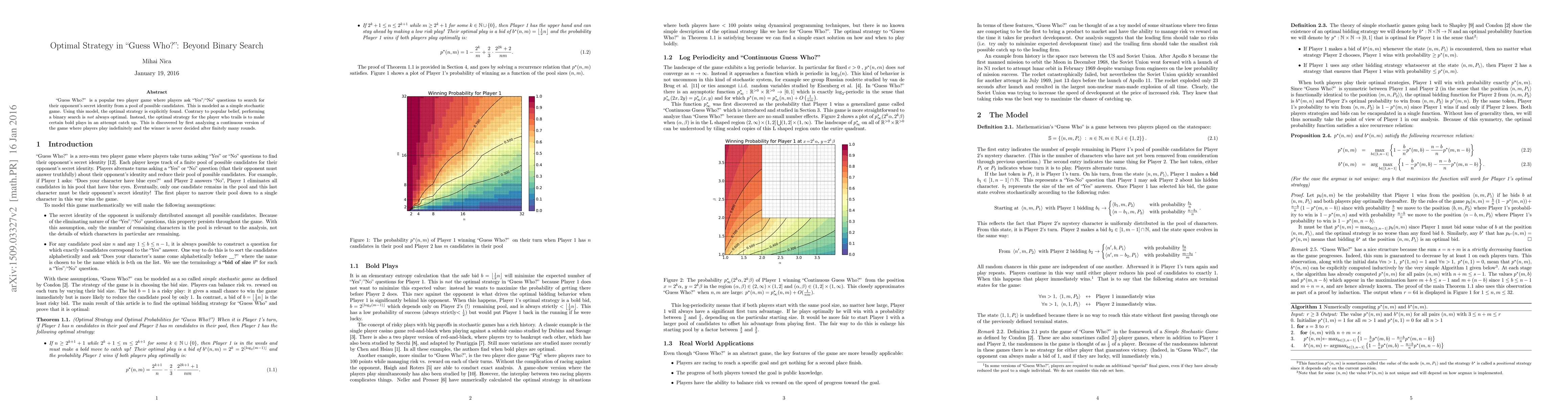 "Guess Who?" is a popular two player game where players ask "Yes"/"No" questions to search for their opponent's secret identity from a pool of possible candidates. This is modeled as a simple stochastic game. Using this model, the optimal strategy is explicitly found. Contrary to popular belief, performing a binary search is \emph{not} always optimal. Instead, the optimal strategy for the player who trails is to make certain bold plays in an attempt catch up. This is discovered by first analyzing a continuous version of the game where players play indefinitely and the winner is never decided after finitely many rounds.