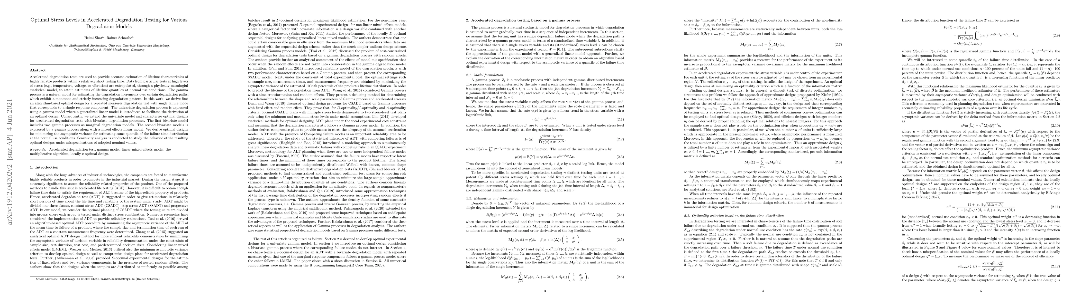 This paper develops optimal design algorithms for accelerated degradation testing under various degradation models, including univariate and bivariate gamma processes, to accurately estimate lifetime characteristics. It focuses on minimizing the asymptotic variance for failure time distribution quantiles and conducts sensitivity analysis to assess the robustness of the designs.