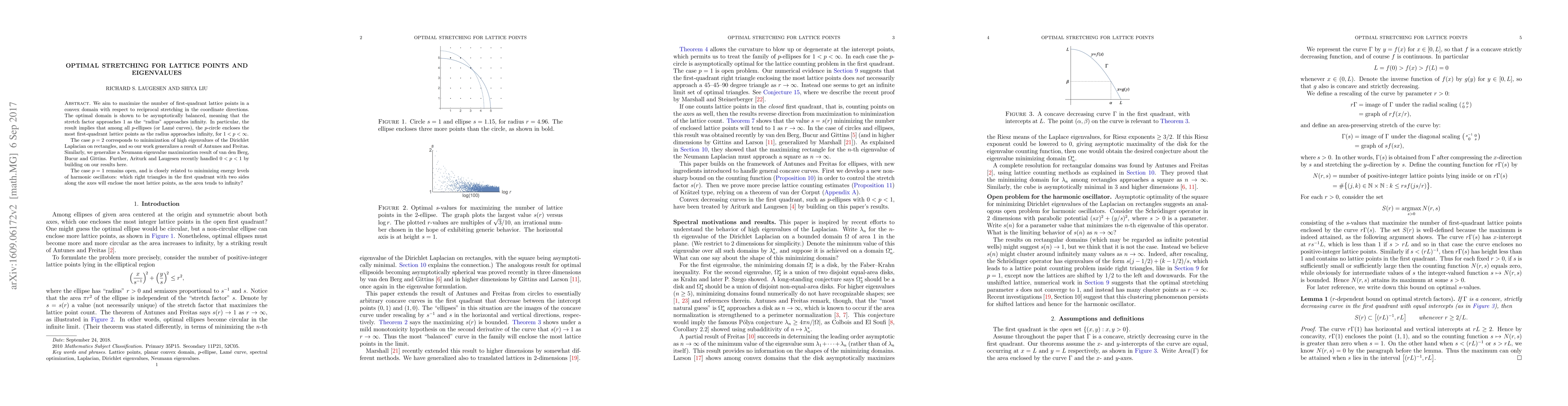 We aim to maximize the number of first-quadrant lattice points in a convex domain with respect to reciprocal stretching in the coordinate directions. The optimal domain is shown to be asymptotically balanced, meaning that the stretch factor approaches 1 as the "radius" approaches infinity. In particular, the result implies that among all p-ellipses (or Lam\'e curves), the p-circle encloses the most first-quadrant lattice points as the radius approaches infinity. The case p=2 corresponds to minimization of high eigenvalues of the Dirichlet Laplacian on rectangles, and so our work generalizes a result of Antunes and Freitas. Similarly, we generalize a Neumann eigenvalue maximization result of van den Berg, Bucur and Gittins. The case p=1 remains open: which right triangles in the first quadrant with two sides along the axes will enclose the most lattice points, as the area tends to infinity?