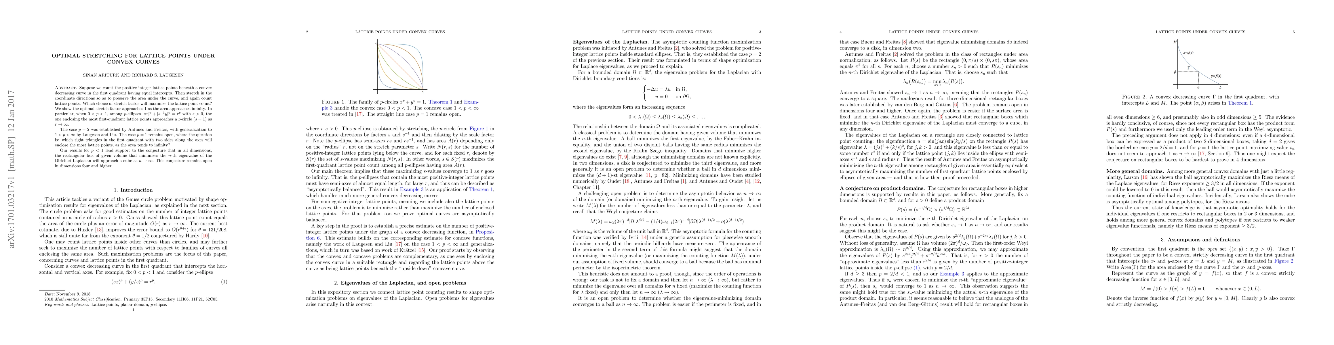Suppose we count the positive integer lattice points beneath a convex decreasing curve in the first quadrant having equal intercepts. Then stretch in the coordinate directions so as to preserve the area under the curve, and again count lattice points. Which choice of stretch factor will maximize the lattice point count? We show the optimal stretch factor approaches $1$ as the area approaches infinity. In particular, when $0