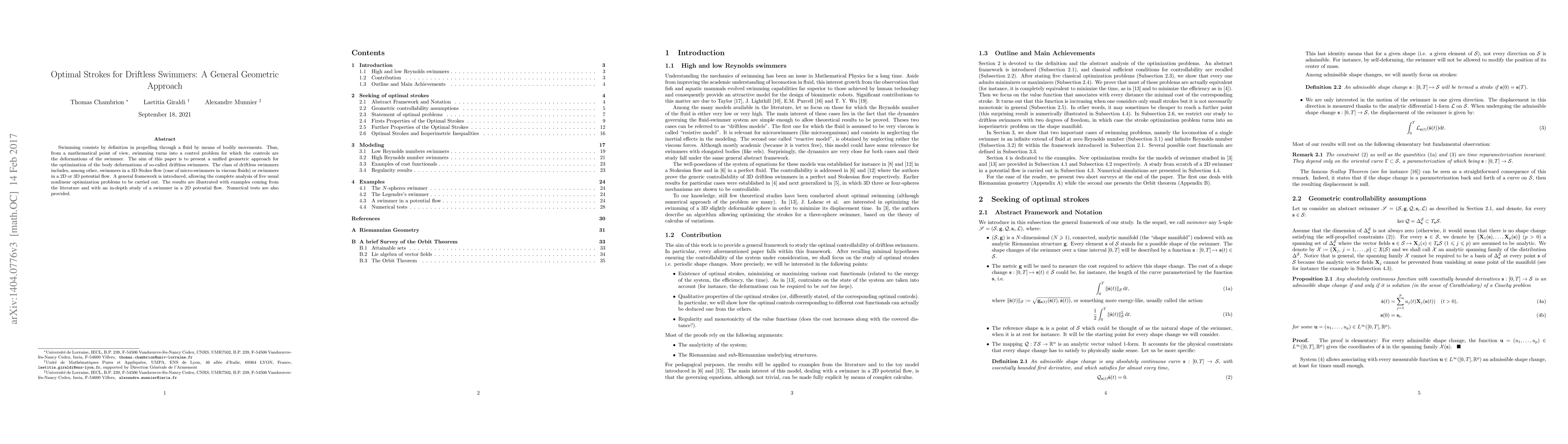 This paper develops a geometric approach to optimize body deformations for driftless swimmers in various fluid flows, including 3D Stokes flow and 2D/3D potential flows, with implications for micro-swimmer design and performance optimization.