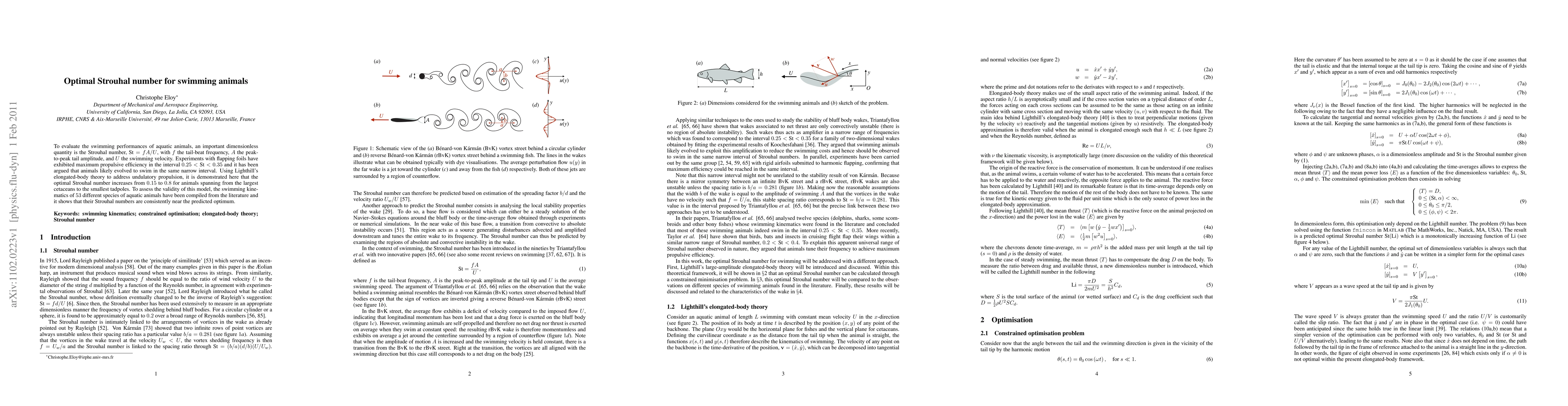 To evaluate the swimming performances of aquatic animals, an important dimensionless quantity is the Strouhal number, St = fA/U, with f the tail-beat frequency, A the peak-to-peak tail amplitude, and U the swimming velocity. Experiments with flapping foils have exhibited maximum propulsive efficiency in the interval 0.25 < St < 0.35 and it has been argued that animals likely evolved to swim in the same narrow interval. Using Lighthill's elongated-body theory to address undulatory propulsion, it is demonstrated here that the optimal Strouhal number increases from 0.15 to 0.8 for animals spanning from the largest cetaceans to the smallest tadpoles. To assess the validity of this model, the swimming kinematics of 53 different species of aquatic animals have been compiled from the literature and it shows that their Strouhal numbers are consistently near the predicted optimum.