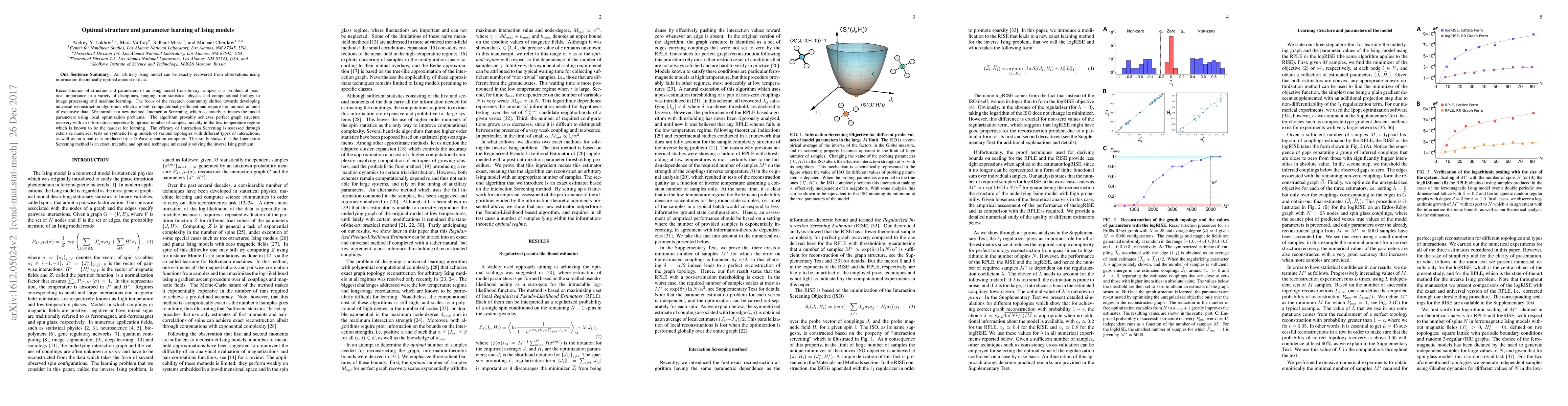 The paper introduces a new method called Interaction Screening for reconstructing Ising models from binary samples, achieving optimal structure recovery and parameter estimation with minimal data. Extensive numerical tests demonstrate its efficacy and optimality, especially in challenging low-temperature regimes.