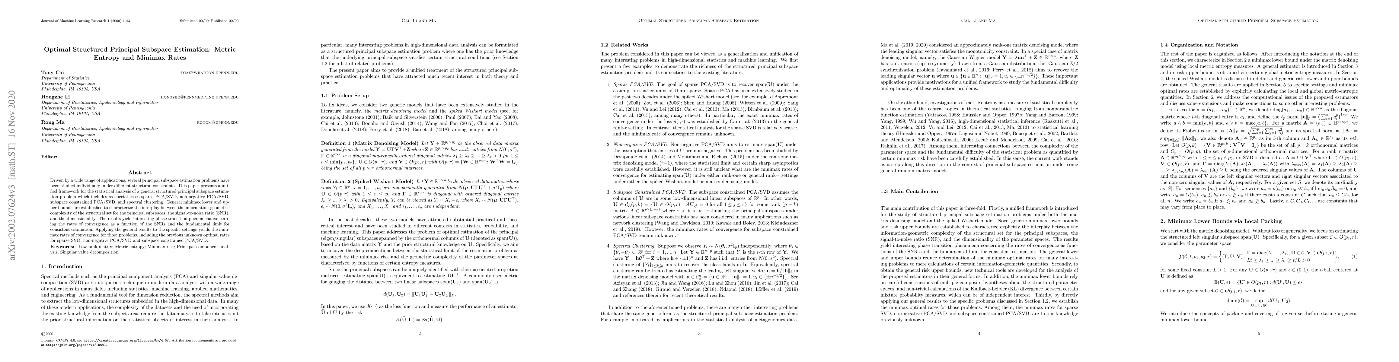 This paper develops a unified framework for structured principal subspace estimation, establishing general minimax rates that apply to various special cases like non-negative, sparse, and constrained PCA/SVD. It reveals phase transition phenomena and provides previously unknown optimal rates for specific settings.