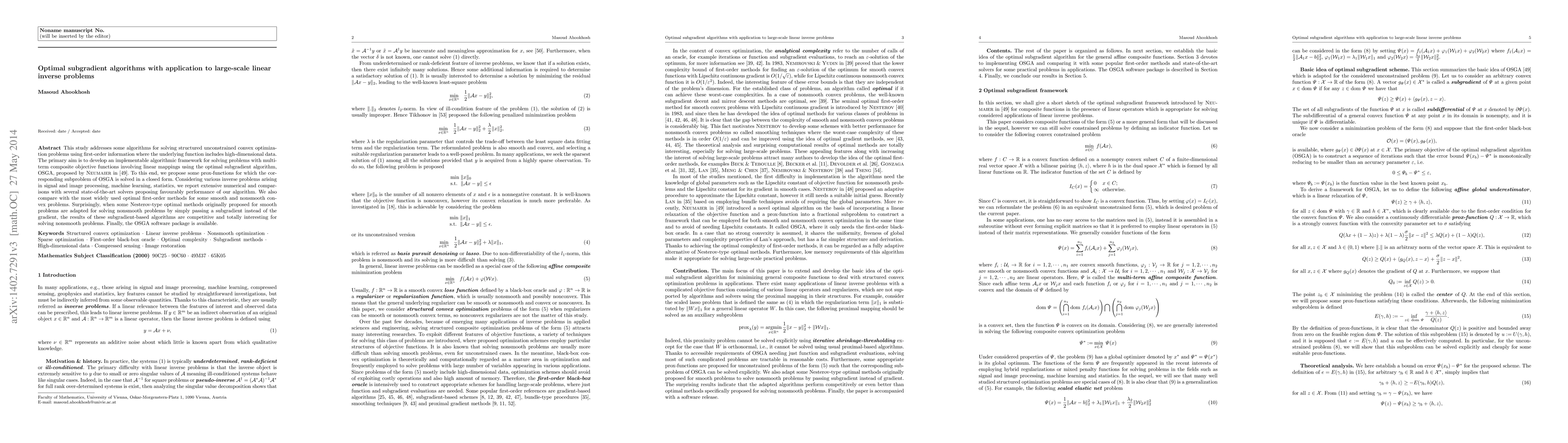 This study addresses some algorithms for solving structured unconstrained convex optimiza- tion problems using first-order information where the underlying function includes high-dimensional data. The primary aim is to develop an implementable algorithmic framework for solving problems with multi- term composite objective functions involving linear mappings using the optimal subgradient algorithm, OSGA, proposed by Neumaier in [49]. To this end, we propose some prox-functions for which the cor- responding subproblem of OSGA is solved in a closed form. Considering various inverse problems arising in signal and image processing, machine learning, statistics, we report extensive numerical and compar- isons with several state-of-the-art solvers proposing favourably performance of our algorithm. We also compare with the most widely used optimal first-order methods for some smooth and nonsmooth con- vex problems. Surprisingly, when some Nesterov-type optimal methods originally proposed for smooth problems are adapted for solving nonsmooth problems by simply passing a subgradient instead of the gradient, the results of these subgradient-based algorithms are competitive and totally interesting for solving nonsmooth problems. Finally, the OSGA software package is available.
