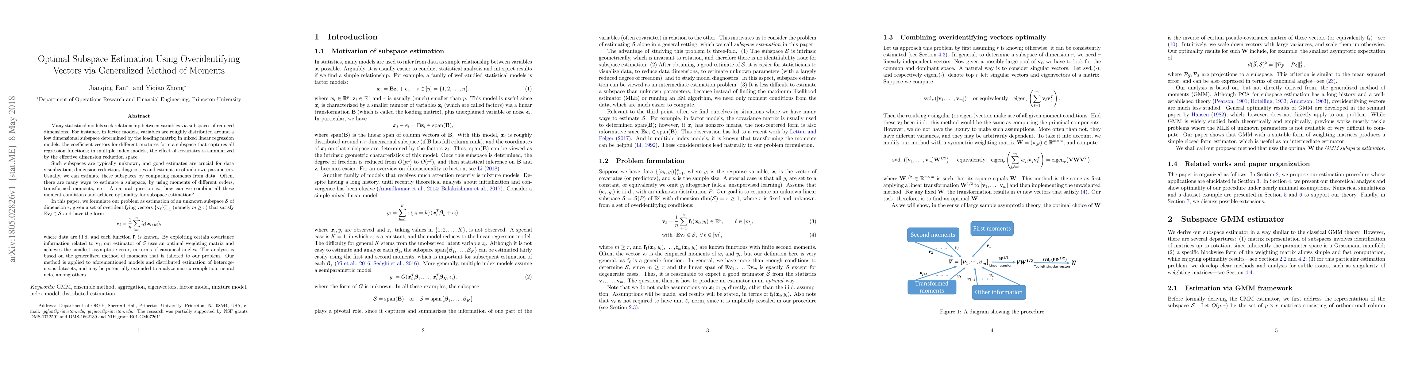 Many statistical models seek relationship between variables via subspaces of reduced dimensions. For instance, in factor models, variables are roughly distributed around a low dimensional subspace determined by the loading matrix; in mixed linear regression models, the coefficient vectors for different mixtures form a subspace that captures all regression functions; in multiple index models, the effect of covariates is summarized by the effective dimension reduction space. Such subspaces are typically unknown, and good estimates are crucial for data visualization, dimension reduction, diagnostics and estimation of unknown parameters. Usually, we can estimate these subspaces by computing moments from data. Often, there are many ways to estimate a subspace, by using moments of different orders, transformed moments, etc. A natural question is: how can we combine all these moment conditions and achieve optimality for subspace estimation? In this paper, we formulate our problem as estimation of an unknown subspace $\mathcal{S}$ of dimension $r$, given a set of overidentifying vectors $\{ \mathrm{\bf v}_\ell \}_{\ell=1}^m$ (namely $m \ge r$) that satisfy $\mathbb{E} \mathrm{\bf v}_{\ell} \in \mathcal{S}$ and have the form $$ \mathrm{\bf v}_\ell = \frac{1}{n} \sum_{i=1}^n \mathrm{\bf f}_\ell(\mathbf{x}_i, y_i), $$ where data are i.i.d. and each function $\mathrm{\bf f}_\ell$ is known. By exploiting certain covariance information related to $\mathrm{\bf v}_\ell$, our estimator of $\mathcal{S}$ uses an optimal weighting matrix and achieves the smallest asymptotic error, in terms of canonical angles. The analysis is based on the generalized method of moments that is tailored to our problem. Our method is applied to aforementioned models and distributed estimation of heterogeneous datasets, and may be potentially extended to analyze matrix completion, neural nets, among others.
