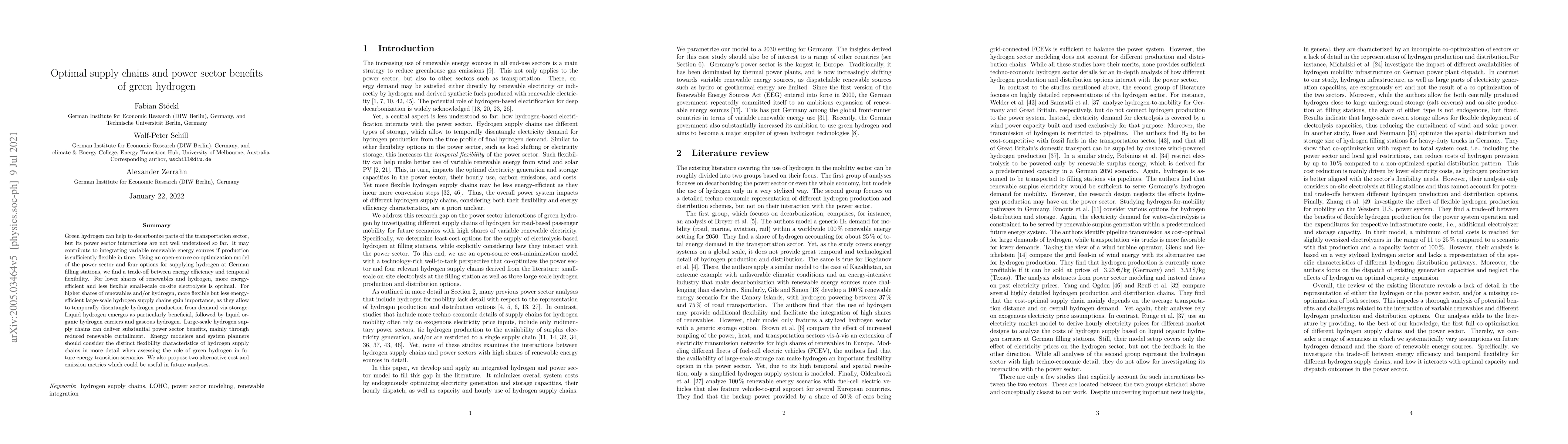 This paper explores the optimal supply chains for green hydrogen and their benefits to the power sector, finding that large-scale, flexible supply chains are crucial for integrating renewable energy, especially when high shares of renewables and hydrogen are involved. It emphasizes the importance of considering hydrogen's flexibility characteristics for future energy transition planning.