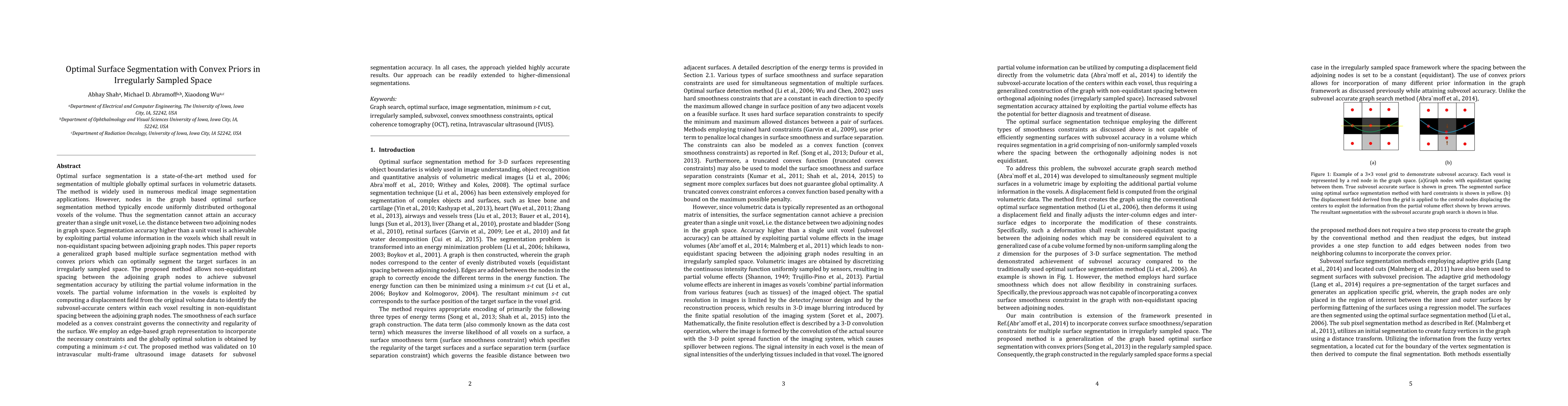A new method for surface segmentation in irregularly sampled space uses convex priors to achieve subvoxel accuracy and incorporates partial volume information to enable non-equidistant spacing between graph nodes.