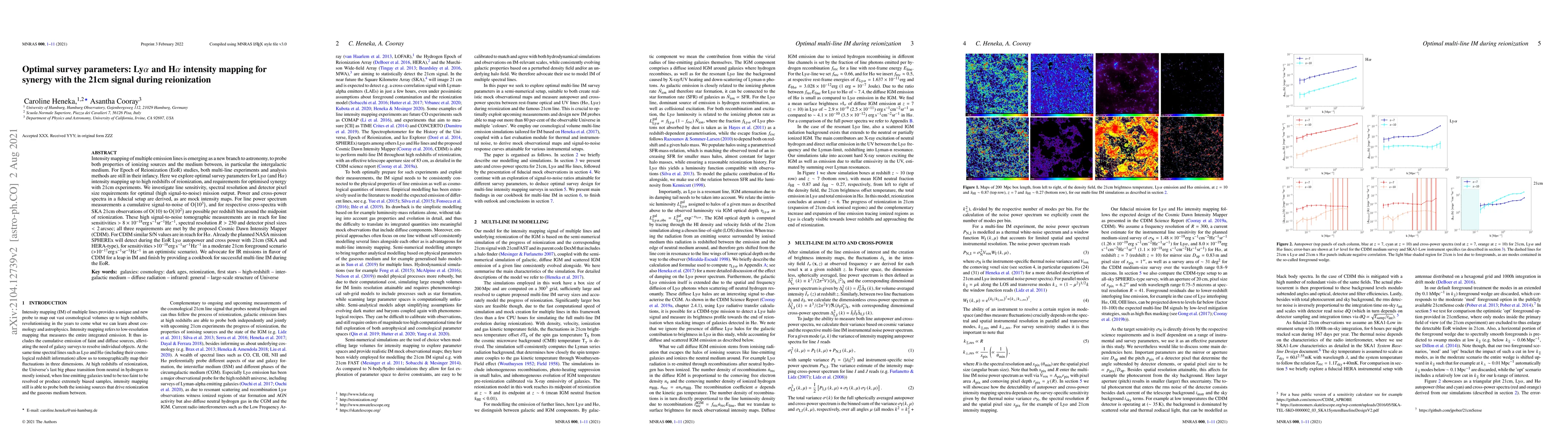 This paper explores optimal survey parameters for Ly$\alpha$ and H$\alpha$ intensity mapping to enhance synergy with 21cm experiments during the Epoch of Reionization. It finds that high signal-to-noise measurements are achievable with line sensitivities above $8\times 10^{-18}$erg$\,$s$^{-1}$sr$^{-1}$Hz$^{-1}$ and spectral resolutions $R>250$, achievable by the proposed Cosmic Dawn Intensity Mapper (CDIM).