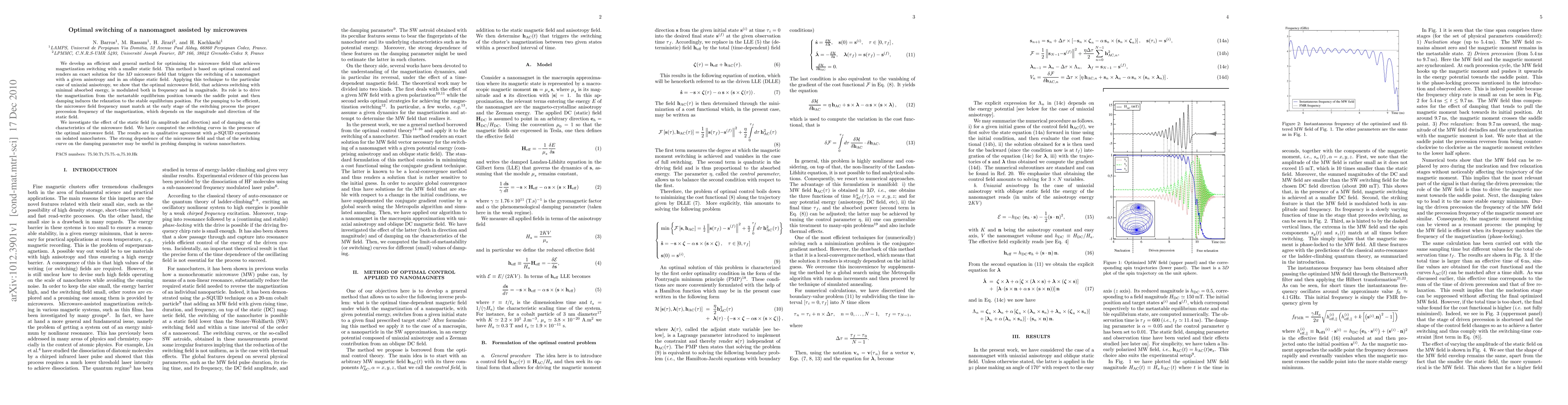 Researchers developed a method to optimize microwave fields for switching nanomagnets with minimal energy absorption, matching experimental results from micro-SQUID experiments.