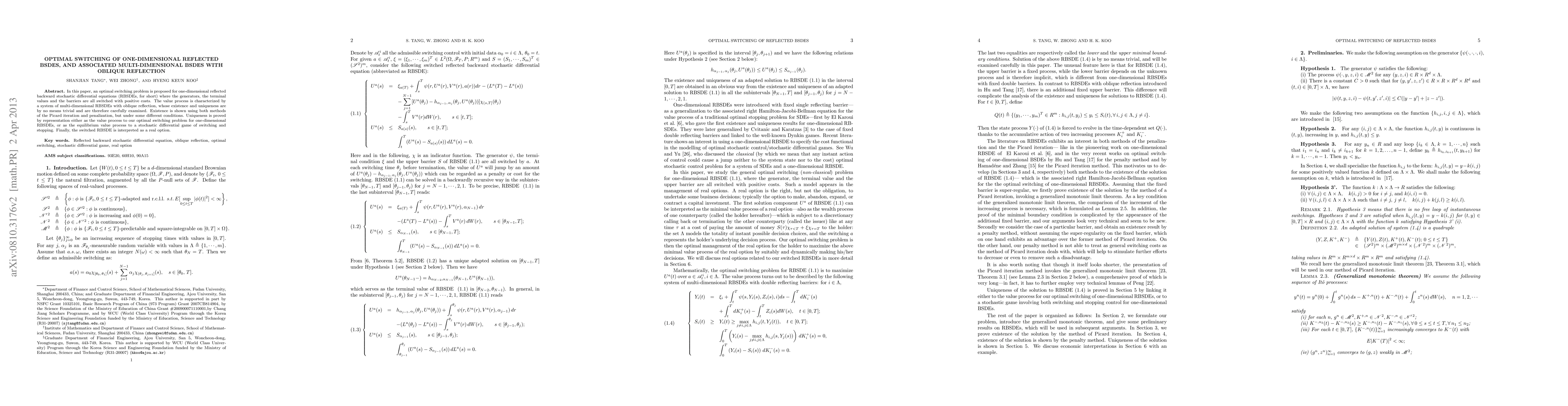 This paper investigates optimal switching strategies for one-dimensional reflected backward stochastic differential equations (RBSDEs) with switched generators and barriers, accompanied by positive costs. The study characterizes the value process through a system of multi-dimensional RBSDEs with oblique reflection, proving existence and uniqueness under different conditions and interpreting the problem as a real option.