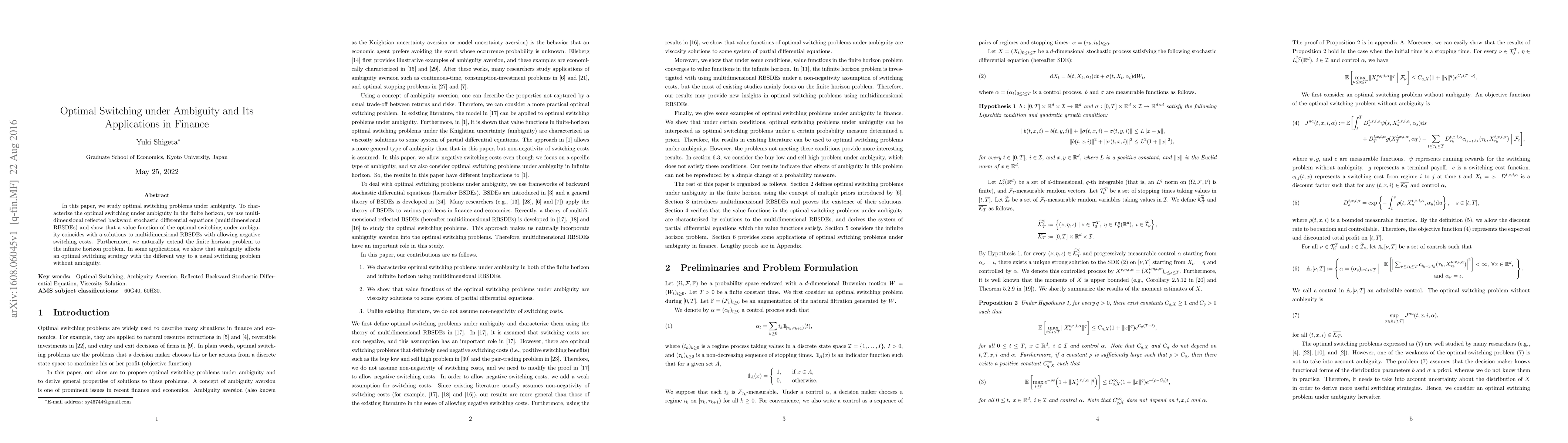 This study contributes to the understanding of decision-making under ambiguity, which is crucial in finance, by providing a framework for analyzing optimal switching problems with ambiguity aversion, thereby enhancing risk management strategies.