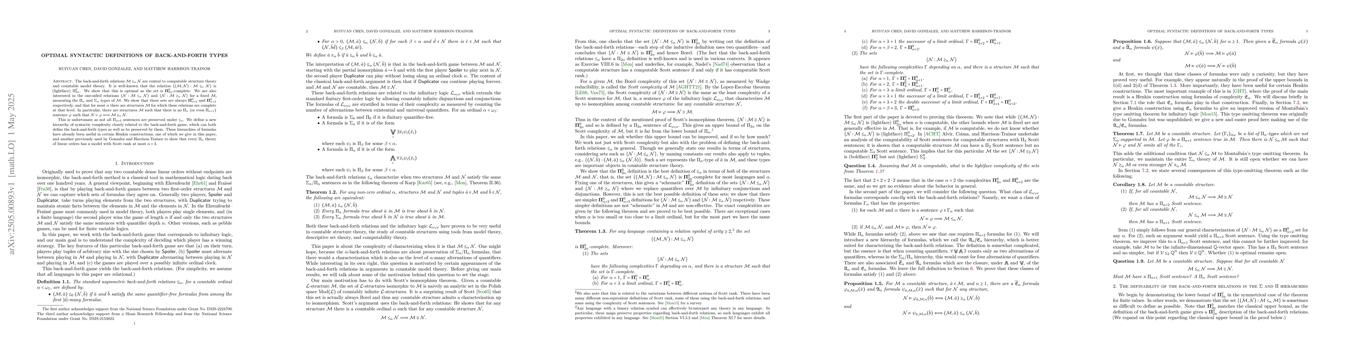 The paper investigates back-and-forth relations in computable structure theory and countable model theory, employing syntactic complexity hierarchies related to the back-and-forth game.