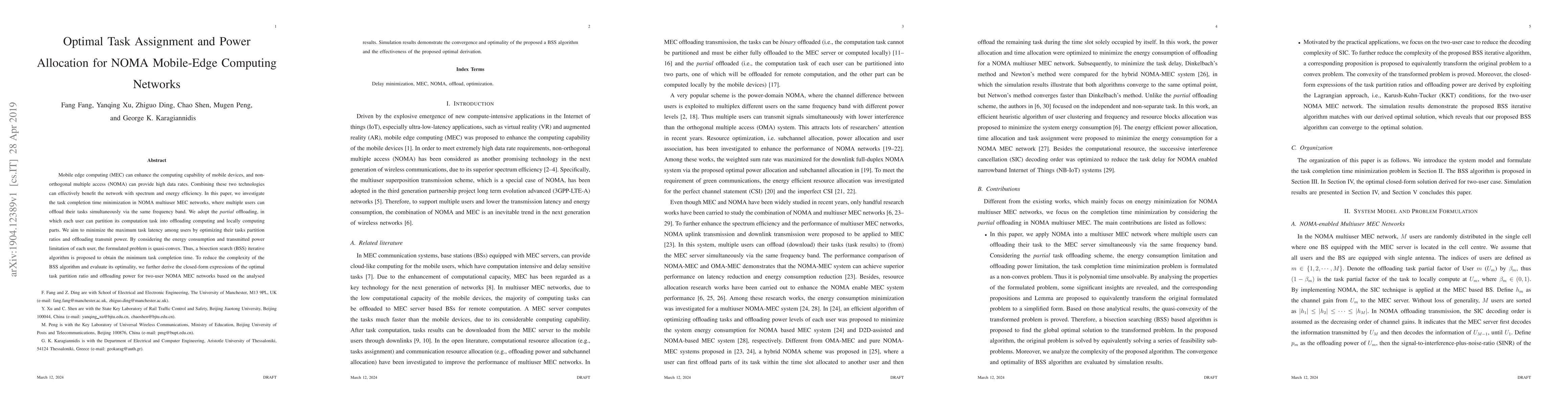 This paper proposes an optimal task assignment and power allocation strategy for NOMA-based multiuser mobile edge computing networks, aiming to minimize the maximum task latency by optimizing task partition ratios and offloading power. A bisection search algorithm is developed to achieve this, with closed-form expressions derived for two-user scenarios, demonstrating the algorithm's convergence and optimality through simulations.