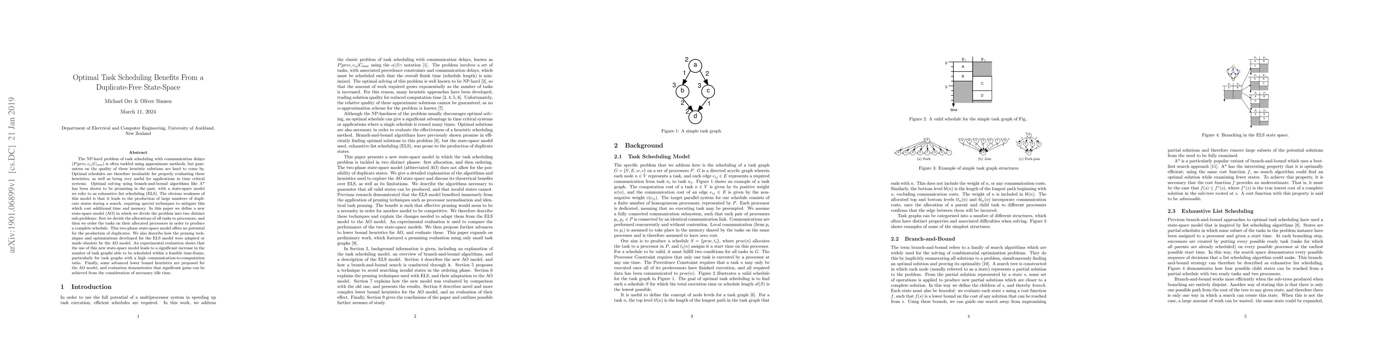 The NP-hard problem of task scheduling with communication delays (P|prec,c_{ij}|C_{\mathrm{max}}) is often tackled using approximate methods, but guarantees on the quality of these heuristic solutions are hard to come by. Optimal schedules are therefore invaluable for properly evaluating these heuristics, as well as being very useful for applications in time critical systems. Optimal solving using branch-and-bound algorithms like A* has been shown to be promising in the past, with a state-space model we refer to as exhaustive list scheduling (ELS). The obvious weakness of this model is that it leads to the production of large numbers of duplicate states during a search, requiring special techniques to mitigate this which cost additional time and memory. In this paper we define a new state-space model (AO) in which we divide the problem into two distinct sub-problems: first we decide the allocations of all tasks to processors, and then we order the tasks on their allocated processors in order to produce a complete schedule. This two-phase state-space model offers no potential for the production of duplicates. We also describe how the pruning techniques and optimisations developed for the ELS model were adapted or made obsolete by the AO model. An experimental evaluation shows that the use of this new state-space model leads to a significant increase in the number of task graphs able to be scheduled within a feasible time-frame, particularly for task graphs with a high communication-to-computation ratio. Finally, some advanced lower bound heuristics are proposed for the AO model, and evaluation demonstrates that significant gains can be achieved from the consideration of necessary idle time.