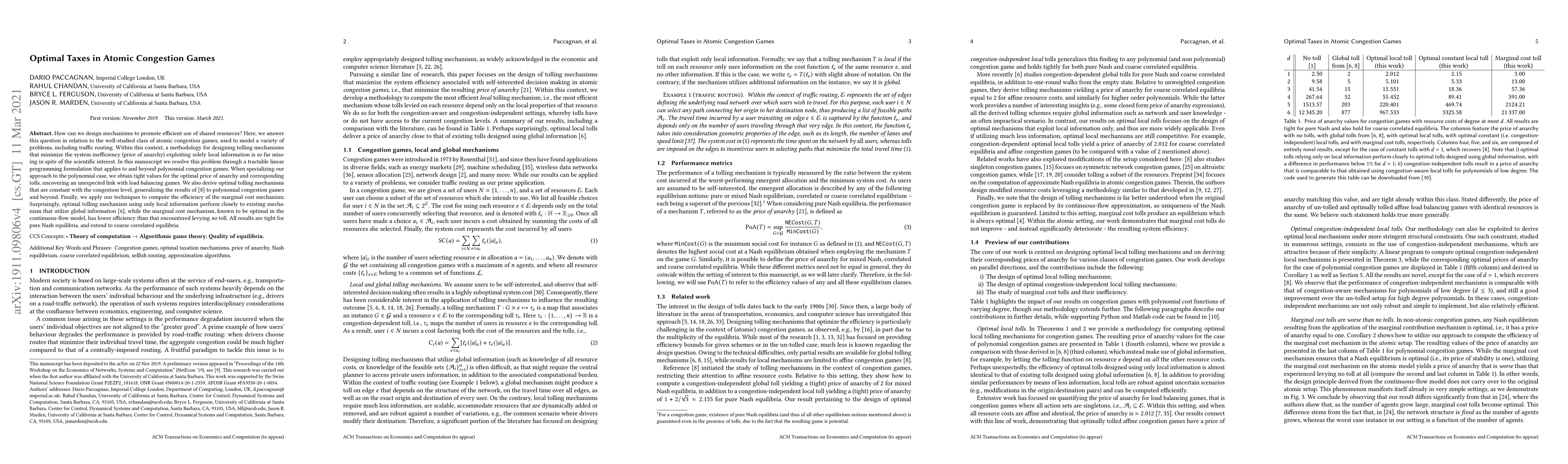 How can we design mechanisms to promote efficient use of shared resources? Here, we answer this question in relation to the well-studied class of atomic congestion games, used to model a variety of problems, including traffic routing. Within this context, a methodology for designing tolling mechanisms that minimize the system inefficiency (price of anarchy) exploiting solely local information is so far missing in spite of the scientific interest. In this manuscript we resolve this problem through a tractable linear programming formulation that applies to and beyond polynomial congestion games. When specializing our approach to the polynomial case, we obtain tight values for the optimal price of anarchy and corresponding tolls, uncovering an unexpected link with load balancing games. We also derive optimal tolling mechanisms that are constant with the congestion level, generalizing the results of Caragiannis et al. [ACM Transactions on Algorithms, 2010] to polynomial congestion games and beyond. Finally, we apply our techniques to compute the efficiency of the marginal cost mechanism. Surprisingly, optimal tolling mechanism using only local information perform closely to existing mechanism that utilize global information [Bil\`o and Vinci, ACM Transactions on Economics and Computation, 2019], while the marginal cost mechanism, known to be optimal in the continuous-flow model, has lower efficiency than that encountered levying no toll. All results are tight for pure Nash equilibria, and extend to coarse correlated equilibria.