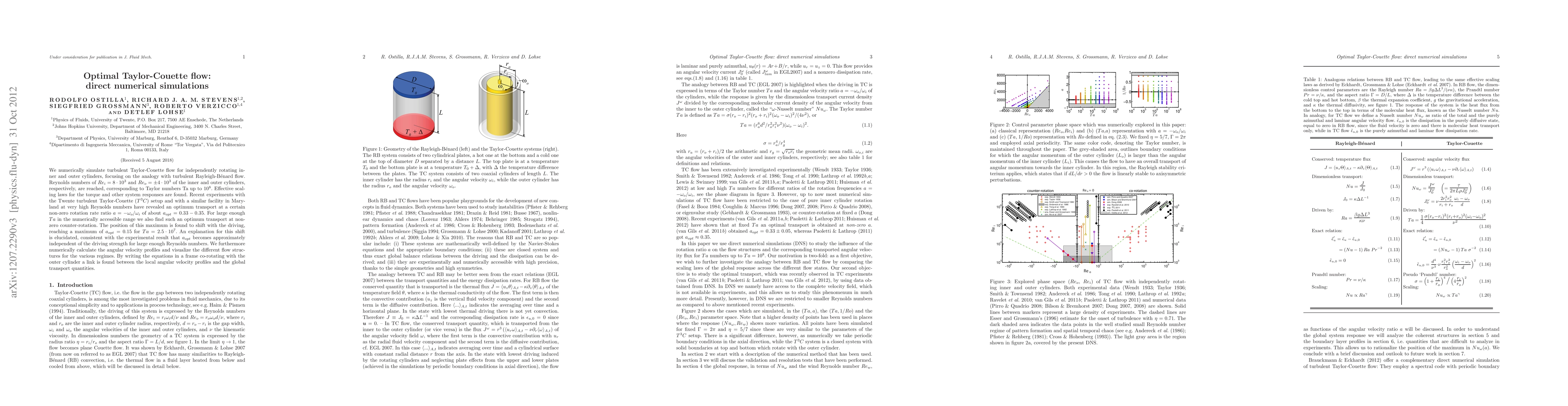 This paper presents direct numerical simulations of turbulent Taylor-Couette flow, achieving high Reynolds numbers and identifying an optimal transport efficiency at a specific non-zero rotation rate ratio. The study reveals a shift in this optimal ratio with driving strength, consistent with experimental observations.