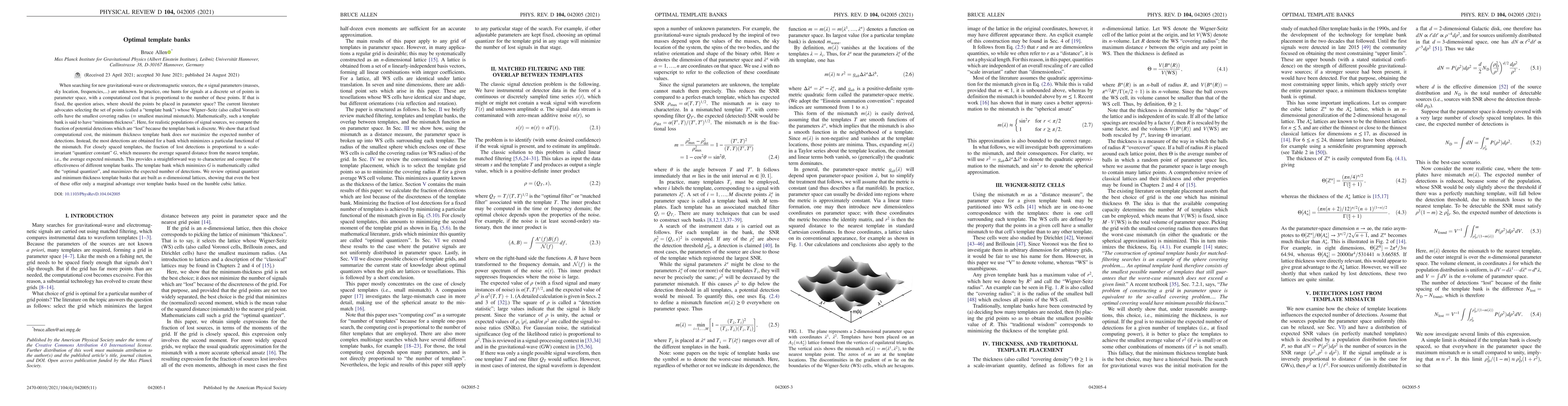When searching for new gravitational-wave or electromagnetic sources, the $n$ signal parameters (masses, sky location, frequencies,...) are unknown. In practice, one hunts for signals at a discrete set of points in parameter space, with a computational cost that is proportional to the number of these points. If that is fixed, the question arises, where should the points be placed in parameter space? The current literature advocates selecting the set of points (called a "template bank") whose Wigner-Seitz (also called Vorono\"i) cells have the smallest covering radius ($\equiv$ smallest maximal mismatch). Mathematically, such a template bank is said to have "minimum thickness". Here, for realistic populations of signal sources, we compute the fraction of potential detections which are "lost" because the template bank is discrete. We show that at fixed computational cost, the minimum thickness template bank does not maximize the expected number of detections. Instead, the most detections are obtained for a bank which minimizes a particular functional of the mismatch. For closely spaced templates, the fraction of lost detections is proportional to a scale-invariant "quantizer constant" G, which measures the average squared distance from the nearest template, i.e., the average expected mismatch. This provides a straightforward way to characterize and compare the effectiveness of different template banks. The template bank which minimizes G is mathematically called the "optimal quantizer", and maximizes the expected number of detections. We review optimal quantizer and minimum thickness template banks that are built as n-dimensional lattices, showing that even the best of these offer only a marginal advantage over template banks based on the humble cubic lattice.