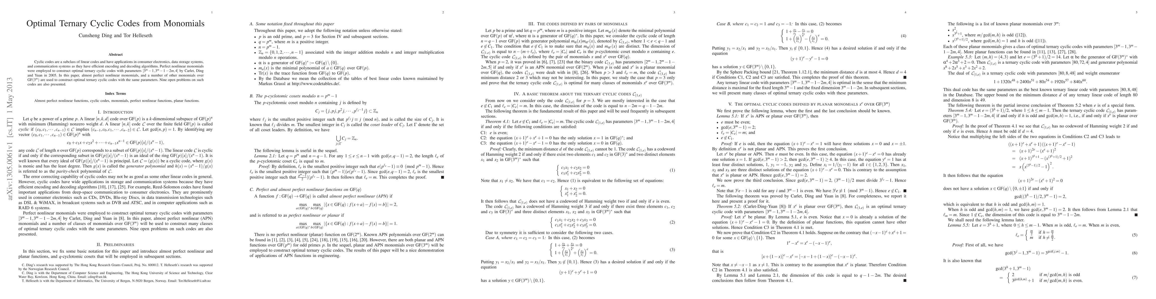 This paper constructs optimal ternary cyclic codes using almost perfect nonlinear monomials and other monomials over $\gf(3^m)$, achieving the same parameters as previous methods. It also presents nine open problems related to these codes.