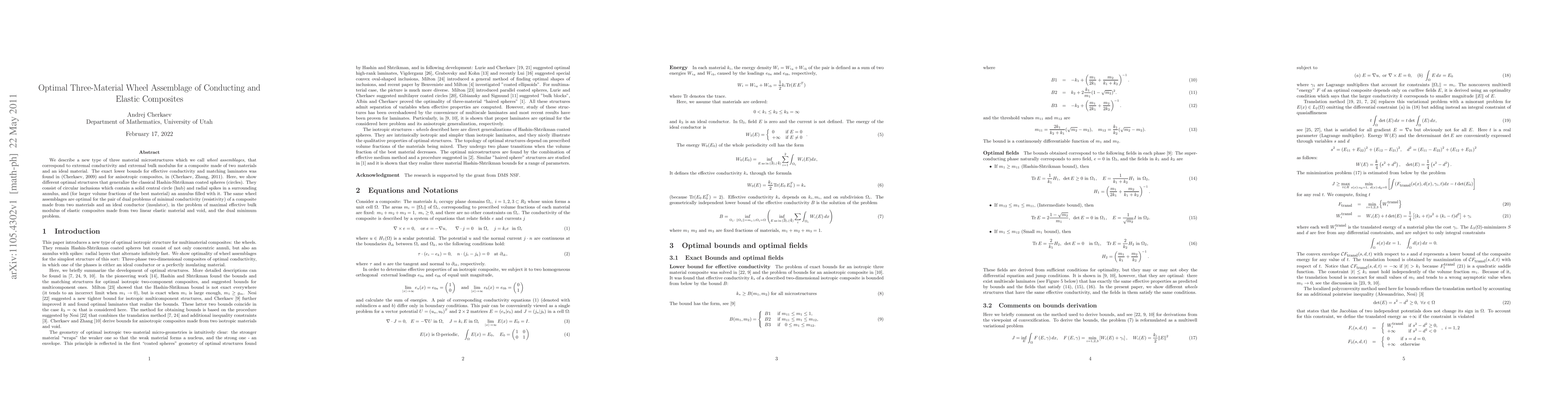 This paper introduces optimal three-material wheel assemblages that maximize conductivity and bulk modulus in composites, generalizing classical Hashin-Shtrikman structures. These structures consist of a central solid circle surrounded by radial spikes and an annulus, optimizing both electrical and mechanical properties.