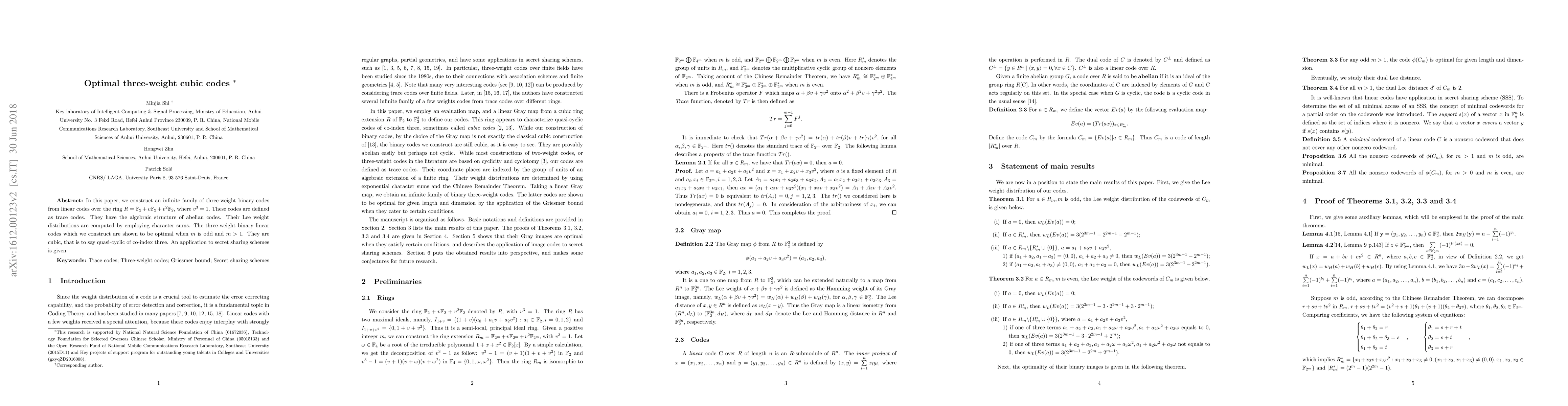 In this paper, we construct an infinite family of three-weight binary codes from linear codes over the ring $R=\mathbb{F}_2+v\mathbb{F}_2+v^2\mathbb{F}_2$, where $v^3=1.$ These codes are defined as trace codes. They have the algebraic structure of abelian codes. Their Lee weight distributions are computed by employing character sums. The three-weight binary linear codes which we construct are shown to be optimal when $m$ is odd and $m>1$. They are cubic, that is to say quasi-cyclic of co-index three. An application to secret sharing schemes is given.