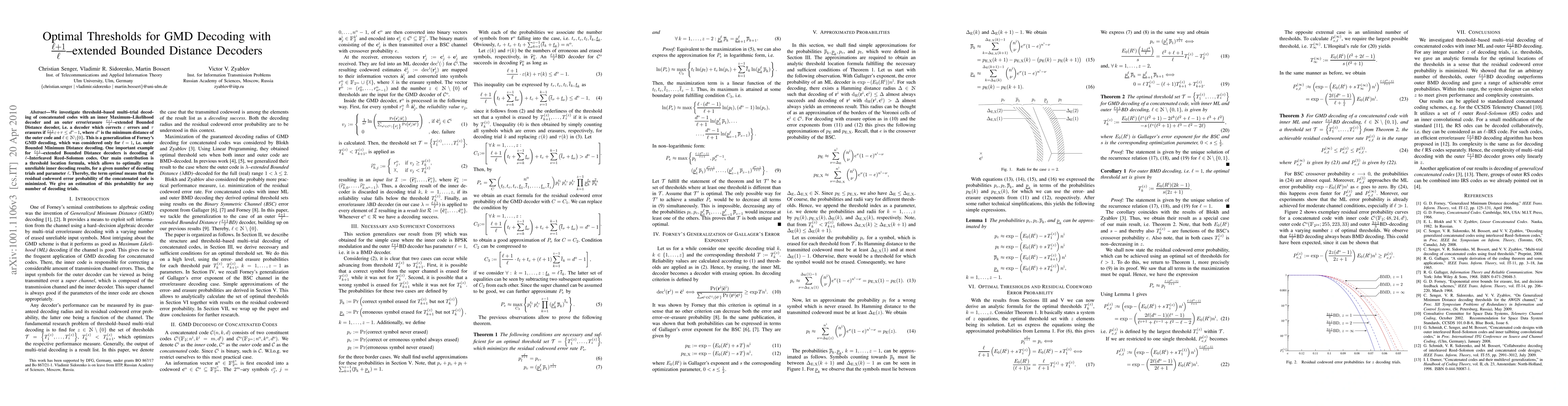 Researchers develop a new method for decoding concatenated codes with error/erasure correction, optimizing thresholds to minimize codeword error probability. Their findings provide a threshold location formula for (L+1)/L-extended Bounded Distance decoders, improving efficiency in decoding trials.