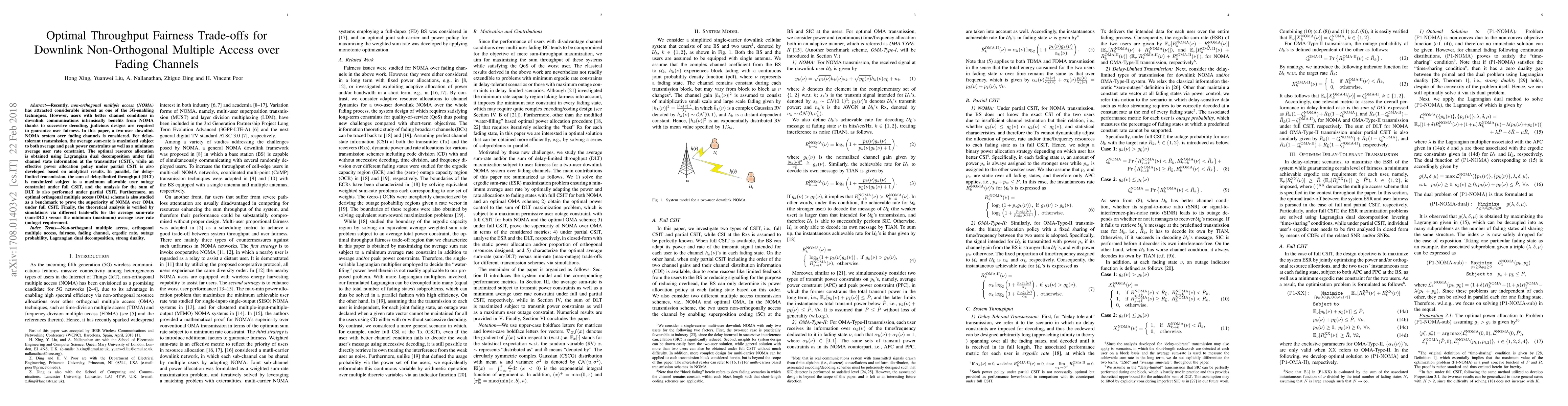 This paper explores optimal resource allocation strategies for a two-user downlink NOMA system over fading channels, focusing on maximizing throughput fairness. It compares NOMA with OMA, demonstrating NOMA's advantages under full channel state information, while also developing effective power allocation policies under partial CSIT.