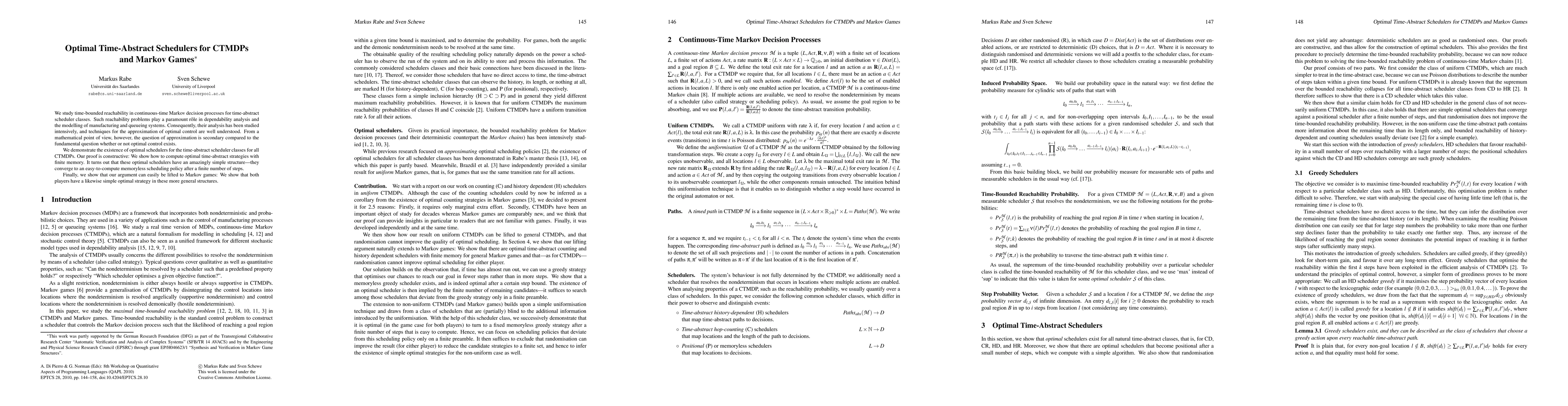 This paper proves the existence of optimal time-abstract schedulers for continuous-time Markov decision processes (CTMDPs) and extends the findings to Markov games. It demonstrates a constructive method to compute these optimal strategies using finite memory, revealing a simple memoryless structure.
