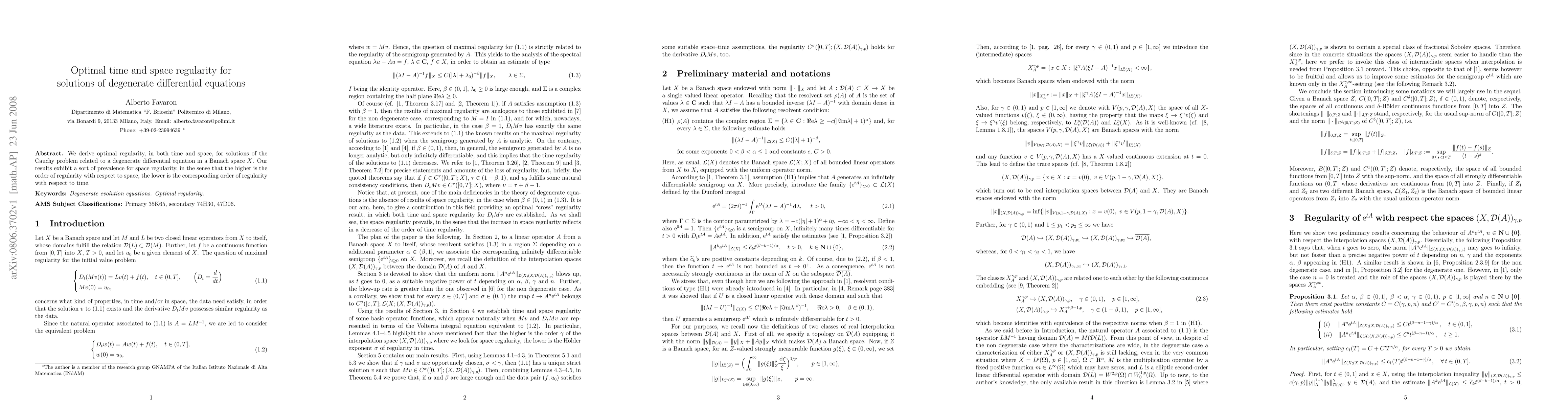 We derive optimal regularity, in both time and space, for solutions of the Cauchy problem related to a degenerate differential equation in a Banach space X. Our results exhibit a sort of prevalence for space regularity, in the sense that the higher is the order of regularity with respect to space, the lower is the corresponding order of regularity with respect to time.