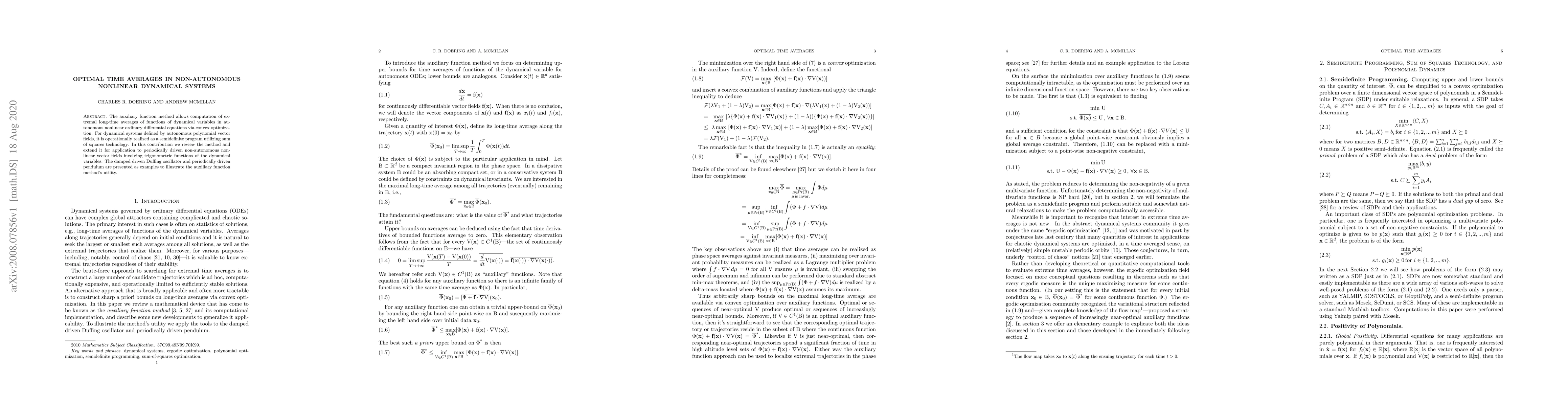This paper reviews the auxiliary function method for computing optimal time averages in autonomous nonlinear systems and extends it to non-autonomous systems driven by periodic functions. Examples include the damped driven Duffing oscillator and periodically driven pendulum.