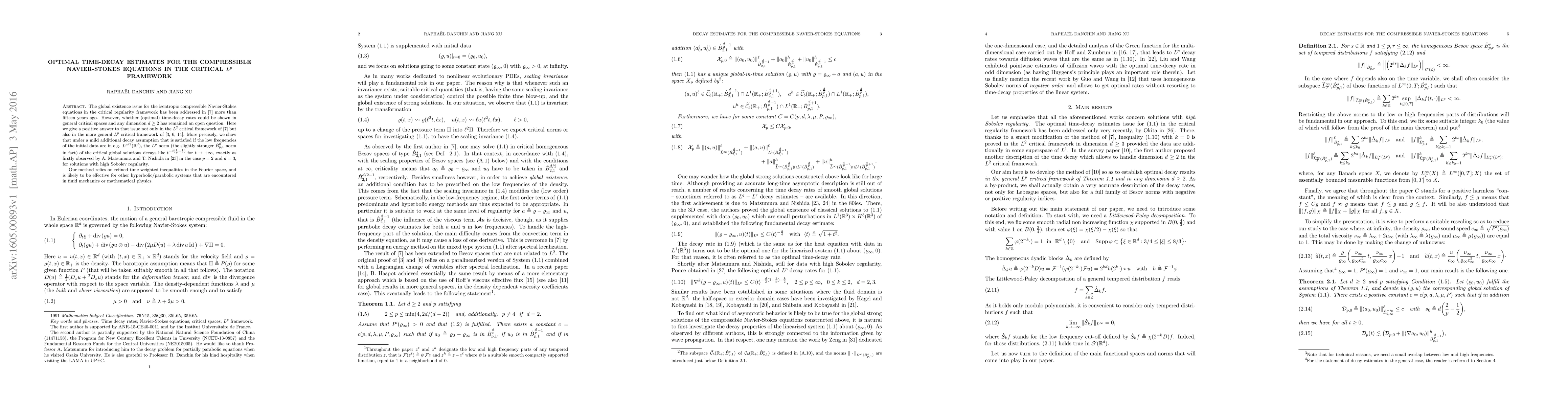 The global existence issue for the isentropic compressible Navier-Stokes equations in the critical regularity framework has been addressed in [7] more than fifteen years ago. However, whether (optimal) time-decay rates could be shown in general critical spaces and any dimension d $\ge$ 2 has remained an open question. Here we give a positive answer to that issue not only in the L 2 critical framework of [7] but also in the more general L p critical framework of [3, 6, 14]. More precisely, we show that under a mild additional decay assumption that is satisfied if the low frequencies of the initial data are in e.g. L p/2 (R d), the L p norm (the slightly stronger $\dot B^0_{p,1}$ norm in fact) of the critical global solutions decays like t --d(1 p -- 1 4) for t $\rightarrow$ +$\infty$, exactly as firstly observed by A. Matsumura and T. Nishida in [23] in the case p = 2 and d = 3, for solutions with high Sobolev regularity. Our method relies on refined time weighted inequalities in the Fourier space, and is likely to be effective for other hyperbolic/parabolic systems that are encountered in fluid mechanics or mathematical physics.