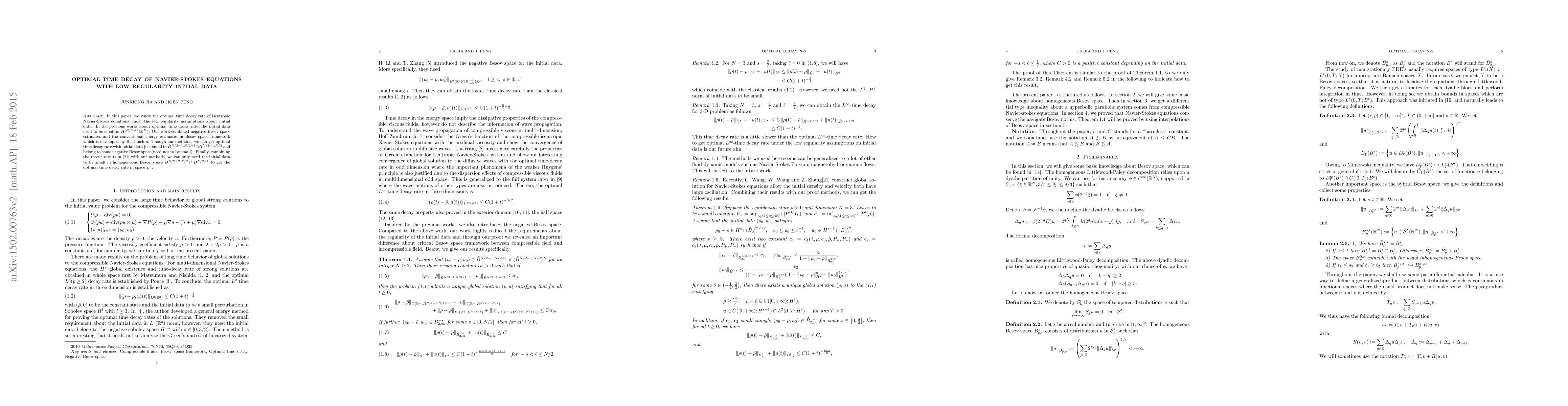 In this paper, we study the optimal time decay rate of isentropic Navier-Stokes equations under the low regularity assumptions about initial data. In the previous works about optimal time decay rate, the initial data need to be small in $H^{[N/2]+2}(\mathbb{R}^{N})$. Our work combined negative Besov space estimates and the conventional energy estimates in Besov space framework which is developed by R. Danchin. Though our methods, we can get optimal time decay rate with initial data just small in $\dot{B}^{N/2-1, N/2+1} \cap \dot{B}^{N/2-1, N/2}$ and belong to some negative Besov space(need not to be small). Finally, combining the recent results in \cite{zhang2014} with our methods, we can only need the initial data to be small in homogeneous Besov space $\dot{B}^{N/2-2, N/2} \cap \dot{B}^{N/2-1}$ to get the optimal time decay rate in space $L^{2}$.