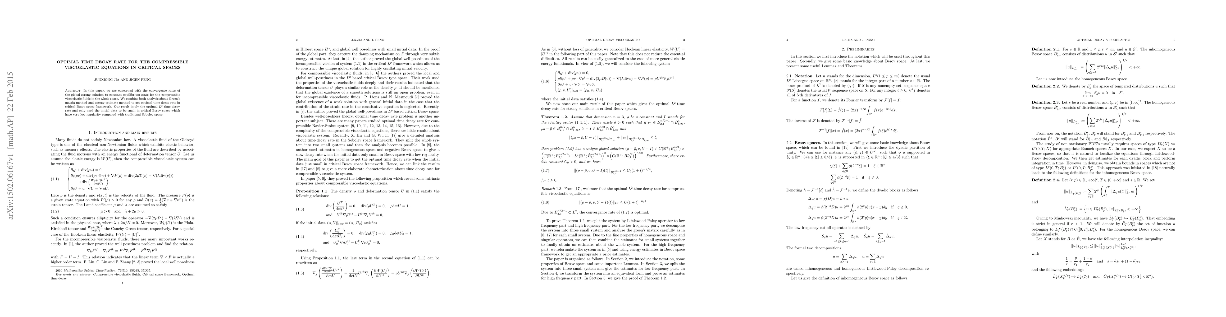 Summary: This paper investigates the convergence rates of global strong solutions to the compressible viscoelastic fluid equations, achieving optimal time decay rates in critical Besov spaces using Green's matrix and energy estimate methods, requiring only small initial data in these low-regularity spaces.