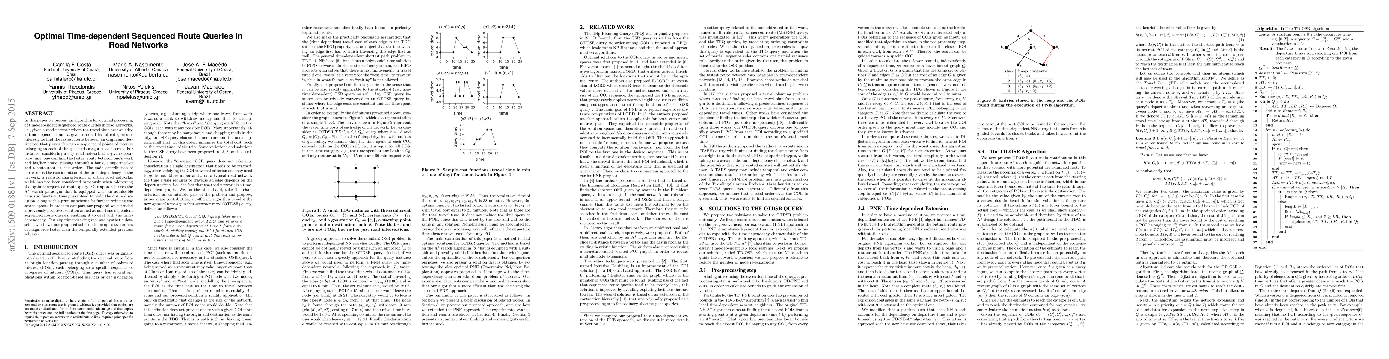 This paper proposes an algorithm using the A* search paradigm to determine the fastest route in time-dependent road networks that visits a sequence of ordered points of interest. The approach efficiently considers time-dependent travel times, significantly outperforming previous non-time-dependent methods, as shown by experiments with real and synthetic datasets.