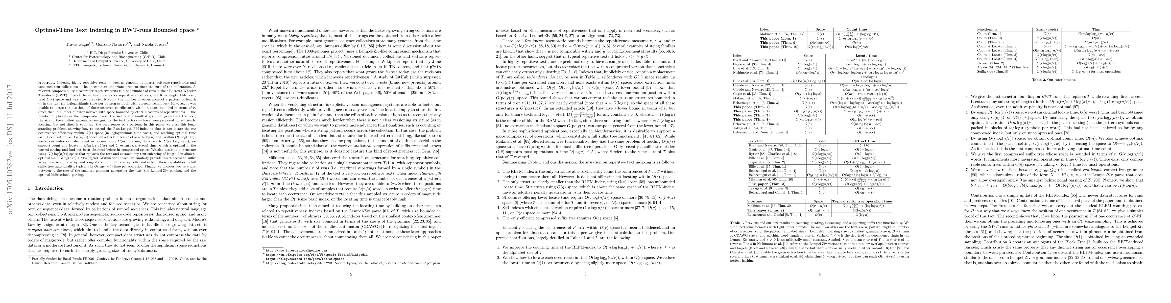 This paper proposes an optimal-time indexing method for highly repetitive texts, such as genomic databases, using the Burrows-Wheeler Transform (BWT) runs. It extends the Run-Length FM-index to efficiently locate occurrences within $O(r)$ space, achieving optimal time complexity for counting and locating patterns. The method also introduces a structure that extracts text substrings in near-optimal time within compressed space.