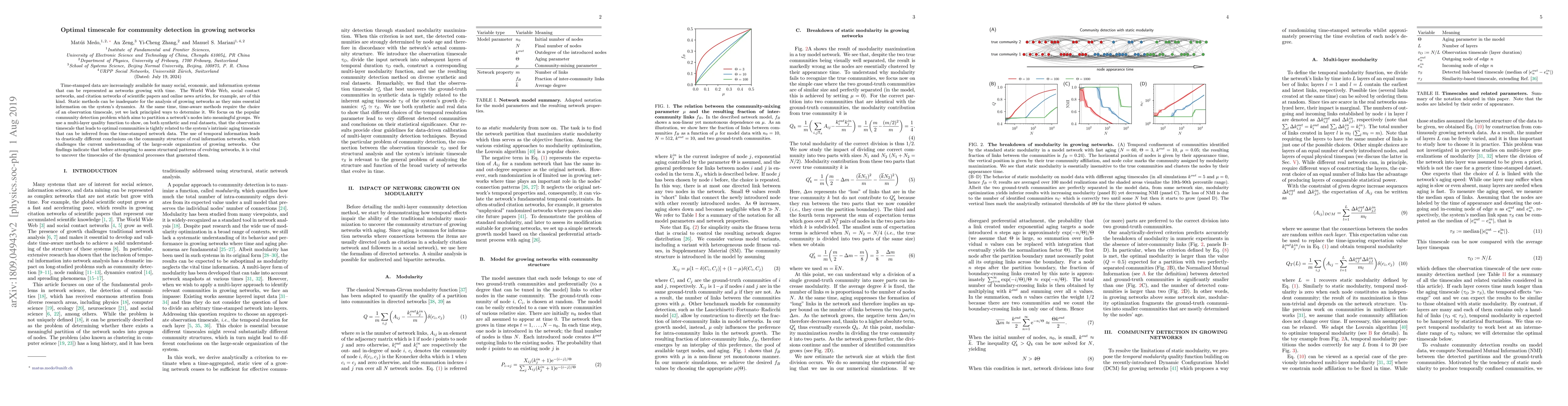Time-stamped data are increasingly available for many social, economic, and information systems that can be represented as networks growing with time. The World Wide Web, social contact networks, and citation networks of scientific papers and online news articles, for example, are of this kind. Static methods can be inadequate for the analysis of growing networks as they miss essential information on the system's dynamics. At the same time, time-aware methods require the choice of an observation timescale, yet we lack principled ways to determine it. We focus on the popular community detection problem which aims to partition a network's nodes into meaningful groups. We use a multi-layer quality function to show, on both synthetic and real datasets, that the observation timescale that leads to optimal communities is tightly related to the system's intrinsic aging timescale that can be inferred from the time-stamped network data. The use of temporal information leads to drastically different conclusions on the community structure of real information networks, which challenges the current understanding of the large-scale organization of growing networks. Our findings indicate that before attempting to assess structural patterns of evolving networks, it is vital to uncover the timescales of the dynamical processes that generated them.