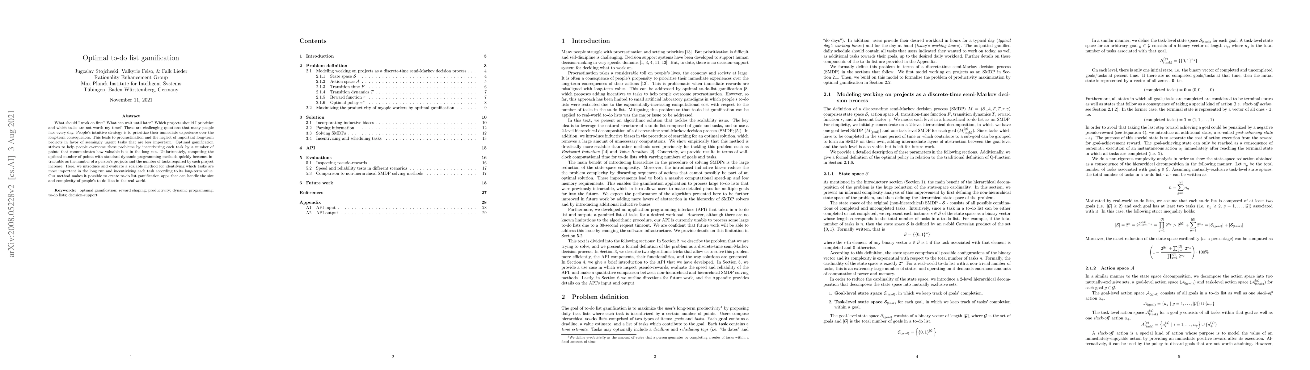 The paper introduces a scalable method for optimal to-do list gamification, addressing the challenge of intractable dynamic programming in prioritizing tasks based on long-term value. This method enables real-world to-do list apps to handle complex, individualized task prioritization.